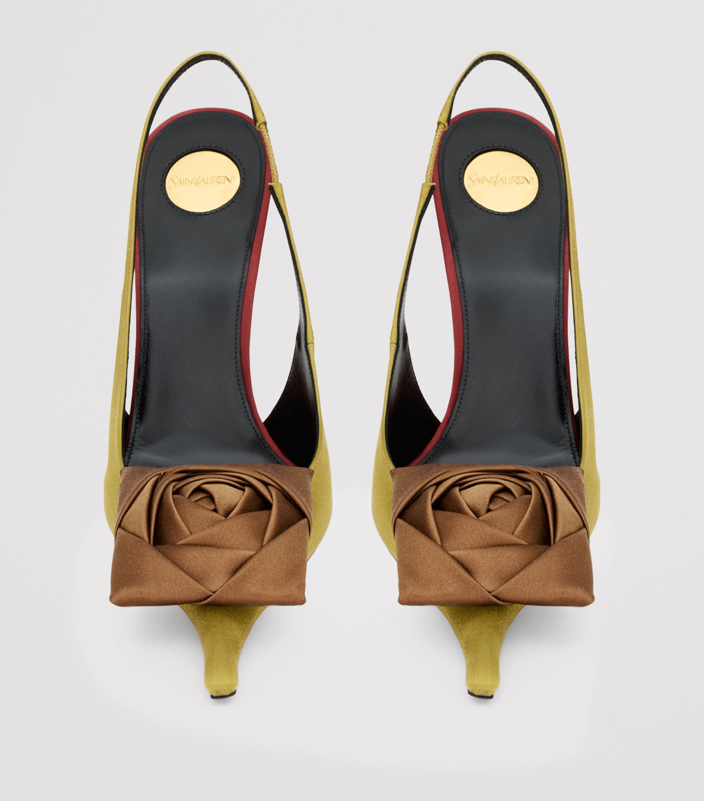 حذاء أماليا مفتوح من الخلف مزين بالساتان باللون البني من سان لوران، 110