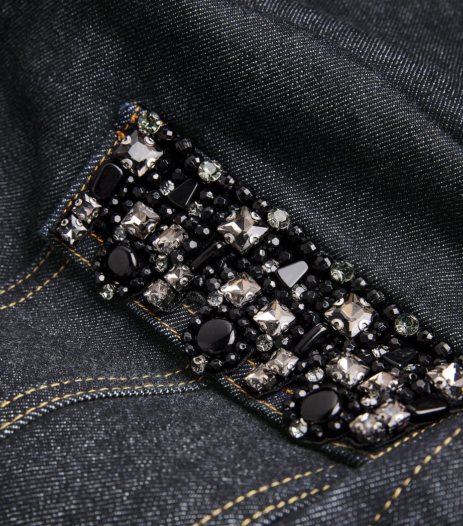 فستان قصير من قماش الدنيم الأزرق مع حواف كريستالية من تصميم Self-Portrait