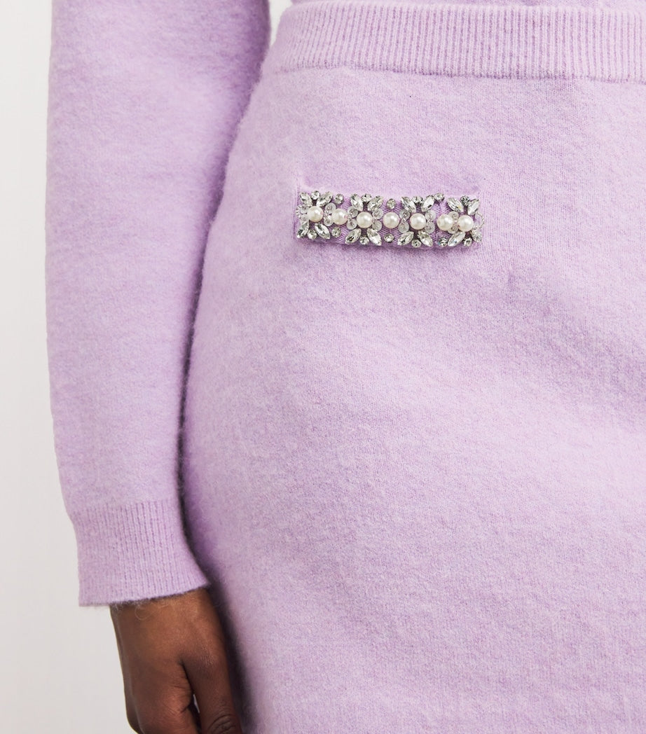 تنورة قصيرة مزينة بالكريستال البنفسجي من Self-Portrait