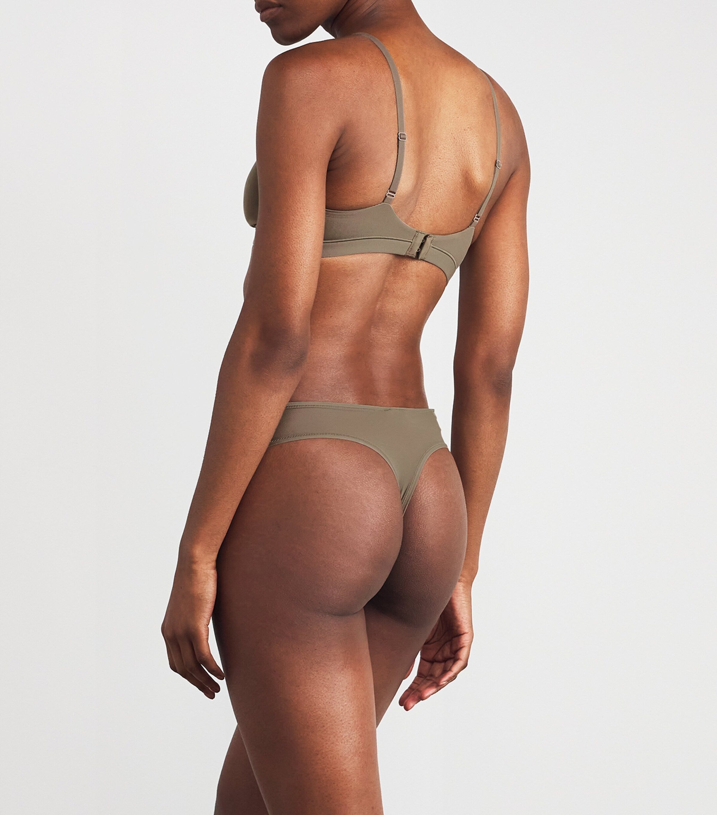 تلتقي عالميّ الملابس الداخلية وملابس التشذيب في مجموعة "تناسب الجميع". يكمن سرّ هذه المجموعة في اسم "تناسب الجميع" من سكيمز. وانطلاقًا من دعمها لتنوع القوام، تضمن كيم كارداشيان، مؤسِّسة العلامة التجارية، والمعروفة بانحناءات قوامها المميزة، أن يكون كل تصميم منها أنيقًا ومريحًا للغاية وشاملًا، بفضل مجموعتها الواسعة من المقاسات والدرجات اللونية. صُنع هذا الثونغ من قماش ناعم كالحرير على البشرة، ويضمن عدم التصاقه بها، ما يجعله أساسًا مثاليًا غير مرئي لأي إطلالة.