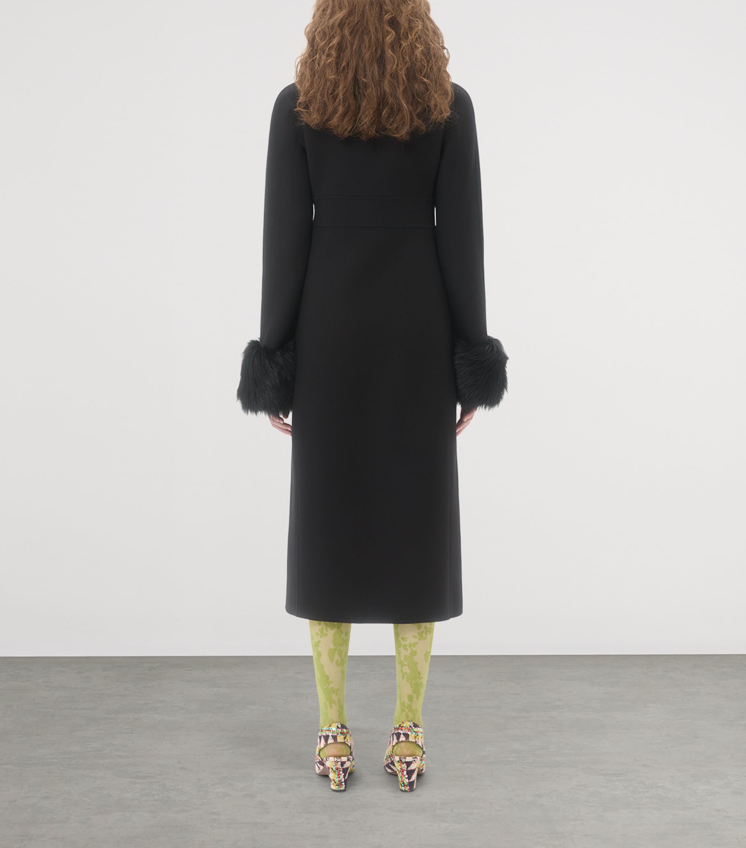 معطف فالنتينو أسود من الصوف البكر والكشمير بحزام