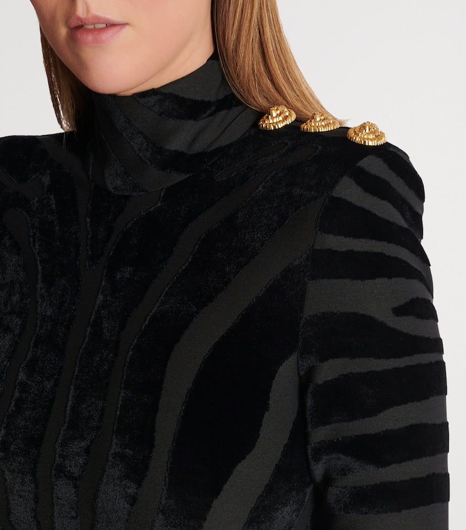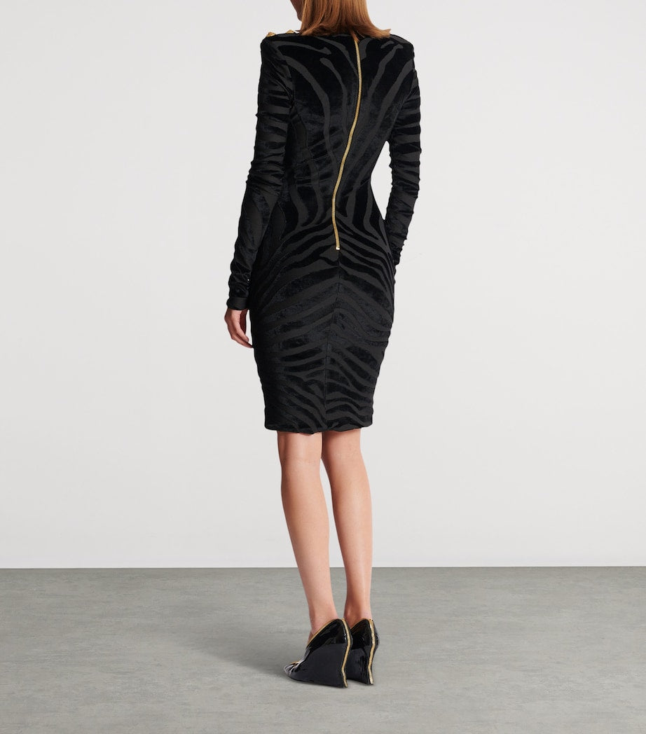 في كل موسم، تجد بالمان طريقةً لإعادة ابتكار الفستان الأسود القصير - وهو تصميمٌ أصبح رمزًا مميزًا تحت إشراف أوليفييه روستينغ. يتميز الفستان بتصميمه المميز للدار، بتصميمه الأنيق على الكتفين، وأزراره الذهبية، وطبعة حمار الوحش التي تتجلى في قماش مخملي فاخر.