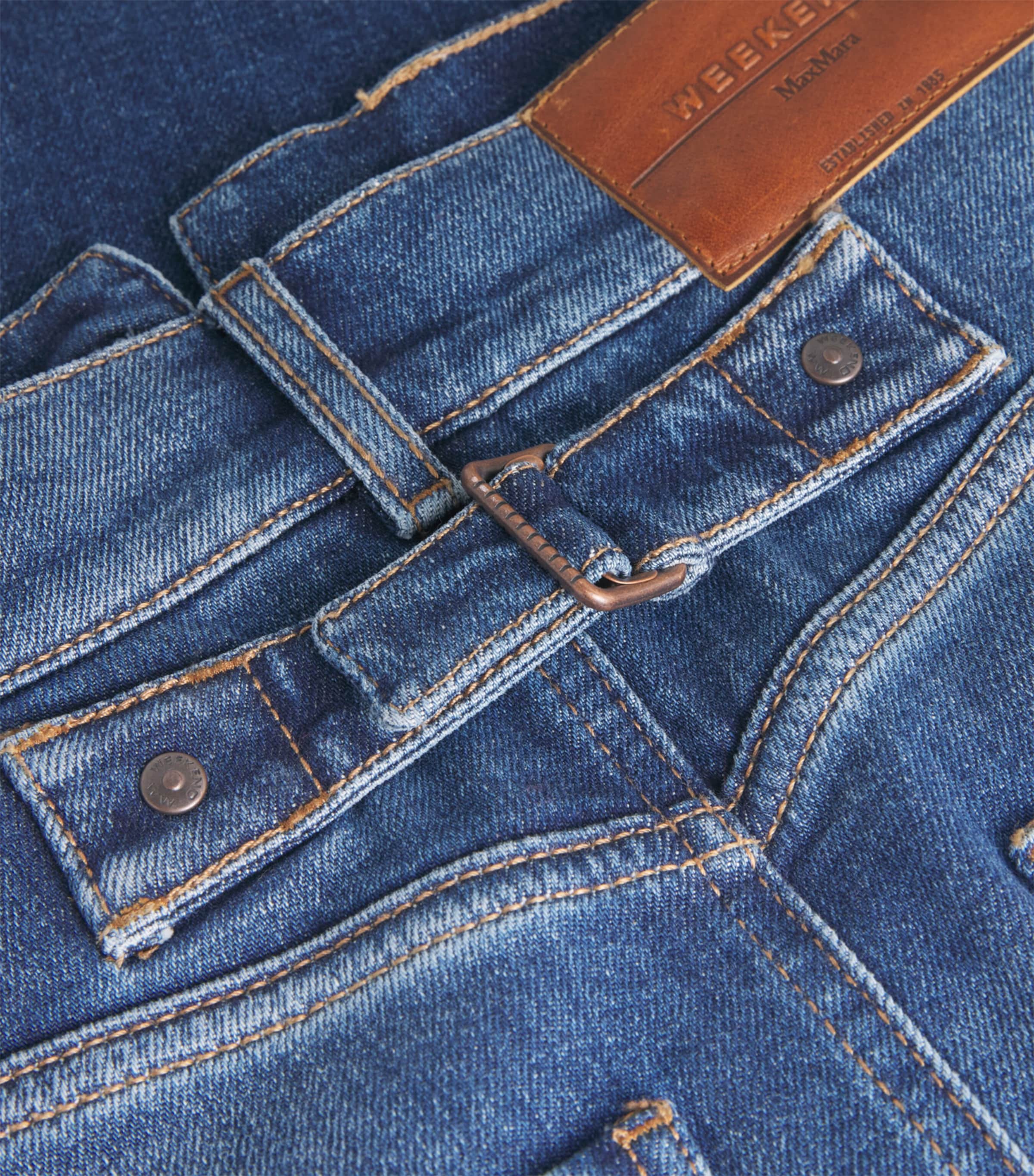بنطالك الجينز الأساسي يتحول إلى تنورة. نادرًا ما تجد موديلات تناسب إطلالاتك الكاجوال والعملية بسهولة مثل تنورة الدنيم. تُقدم ويكند ماكس مارا تصميمًا قويًا بهذا الإصدار متوسط ​​الغسل، المُزين بخطوط ومسامير معدنية تُضفي عليه طابعًا حنينيًا.