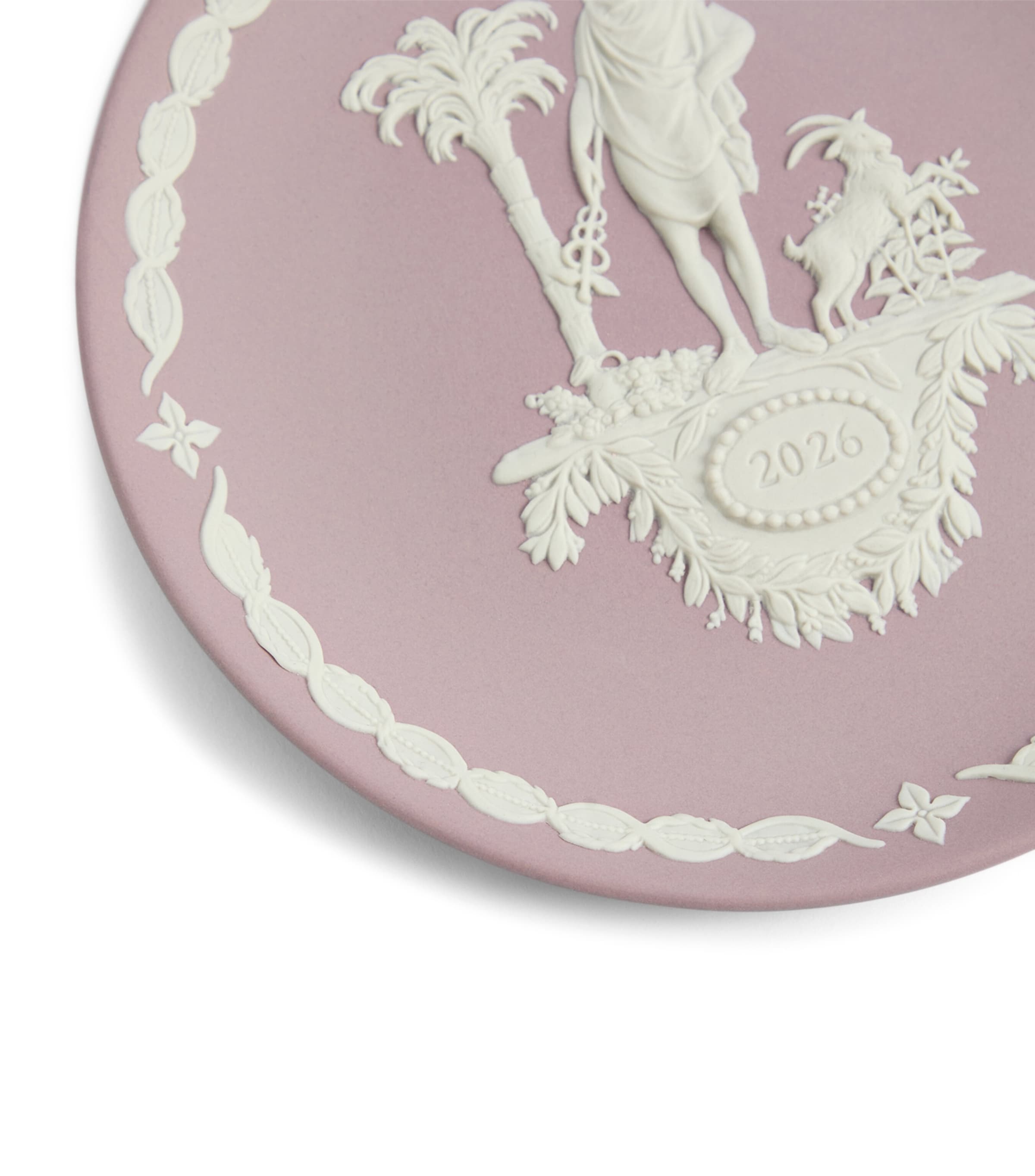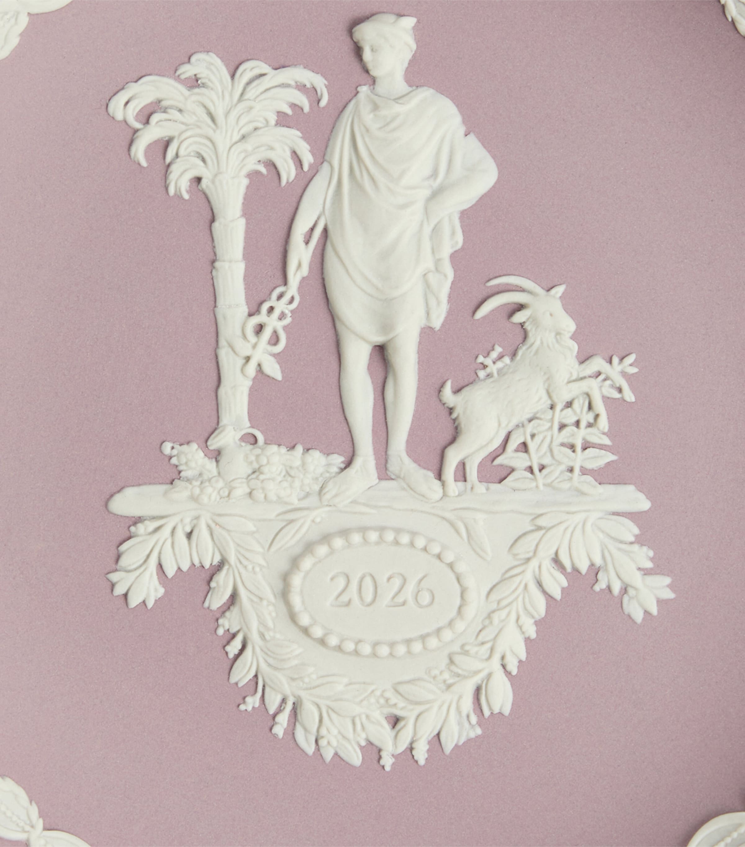Every year, Wedgwood brings out a collectable plate engraved with the year to add to your collection. For 2026, the English brand references its love of Greek mythology with an embossed image of Hermes sat atop a pink jasper base.