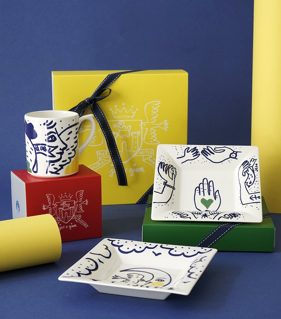 كوب وجه لارشيبيل العاطفي - أبيض، أزرق / نظام التشغيل