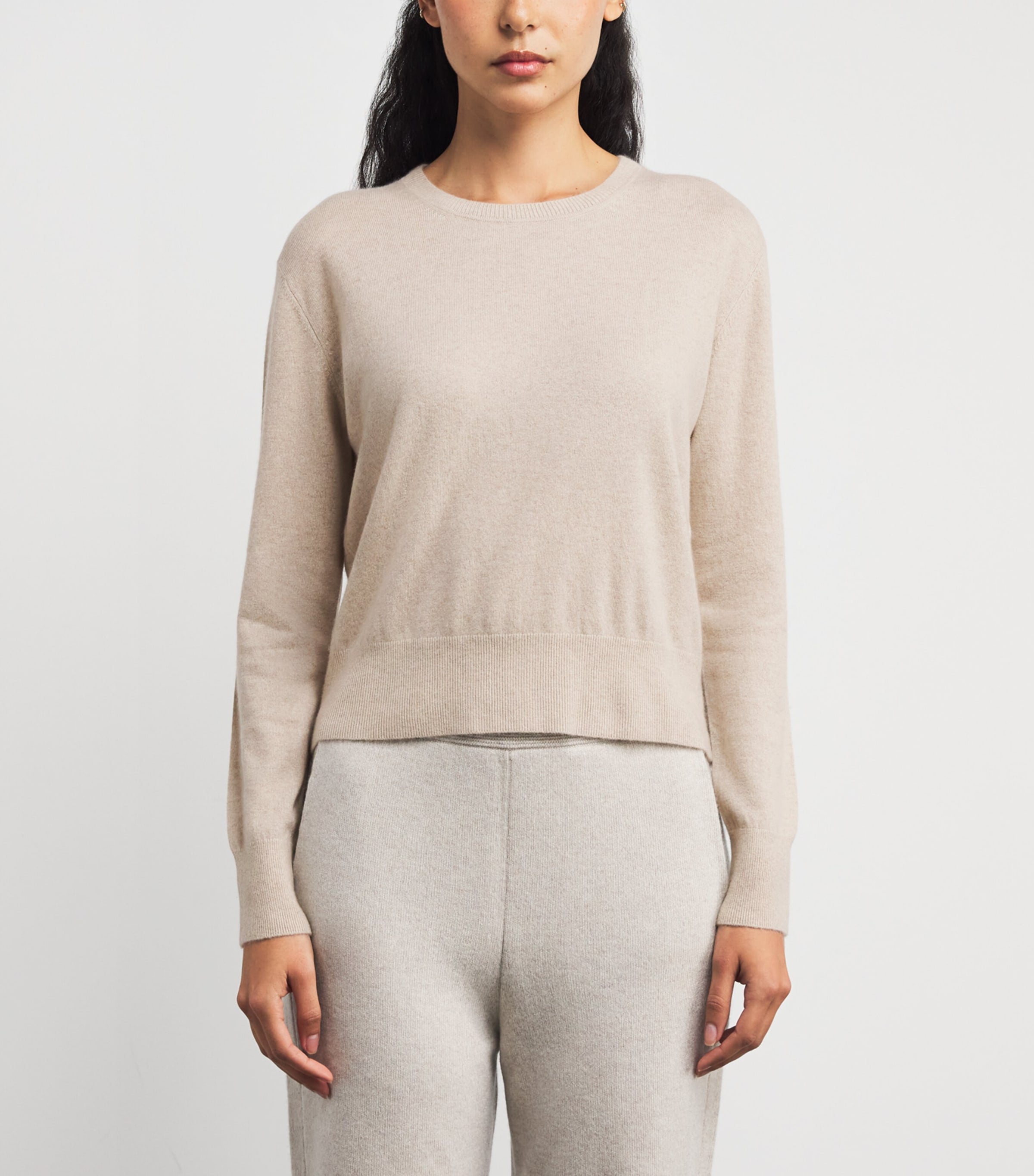 سترة هيبي بياقة دائرية من الكشمير البيج مقاس 4