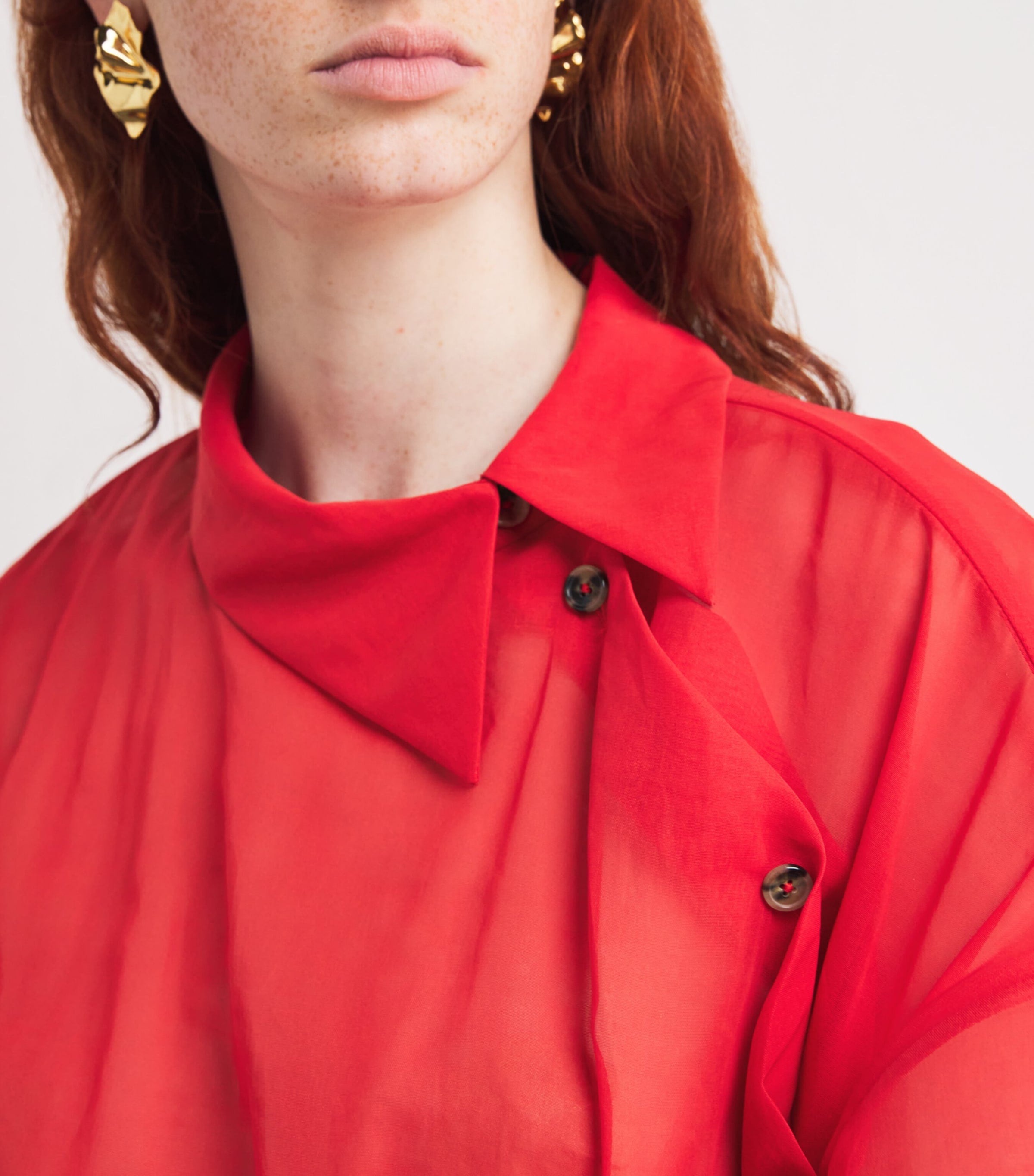 فستان أوك مود الأحمر الحريري من الأورجانزا متوسط الطول