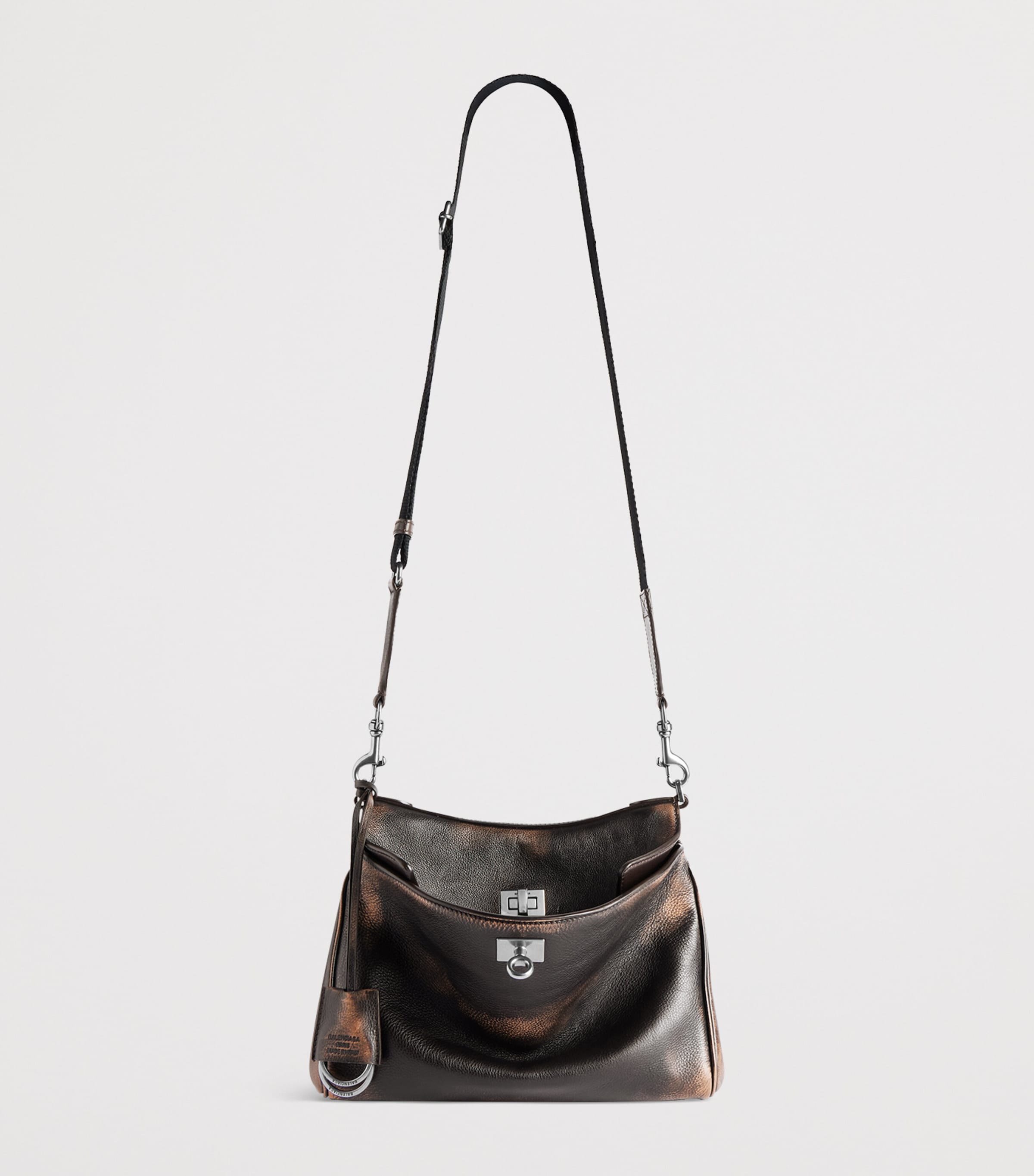حقيبة كتف روديو صغيرة من جلد العجل باللون البيج من بالنسياغا