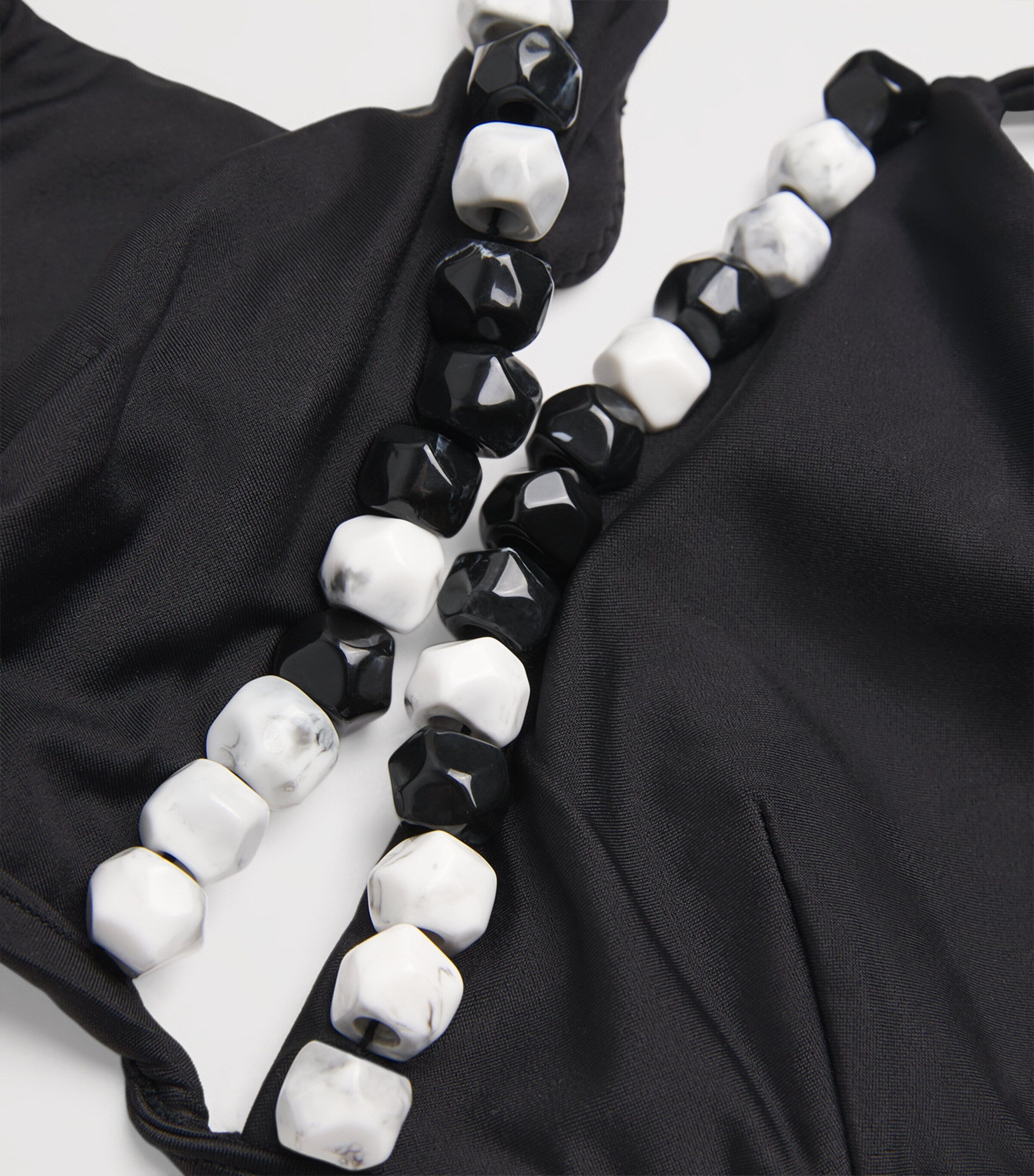 الجزء العلوي من بيكيني باسي المزين بالخرز الأسود