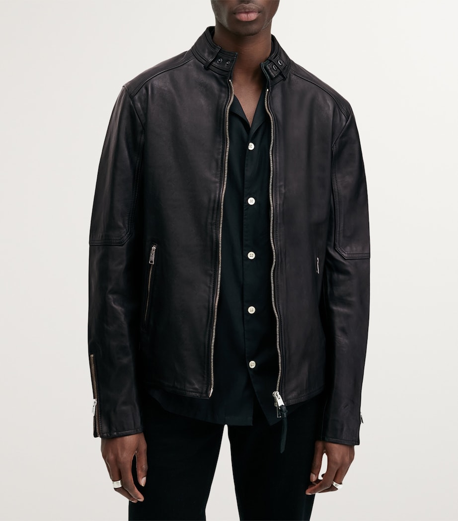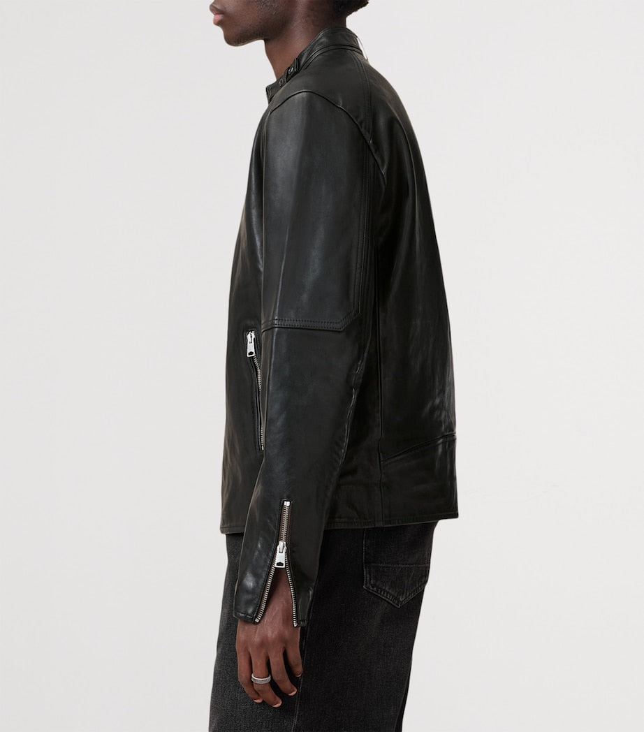 سترة جلدية سوداء من كورا - أسود كالفحم / XL