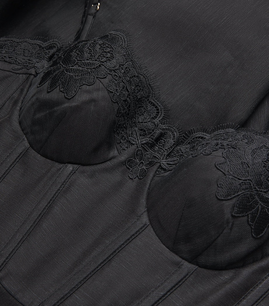 فستان ميدي من الكتان والحرير الأسود