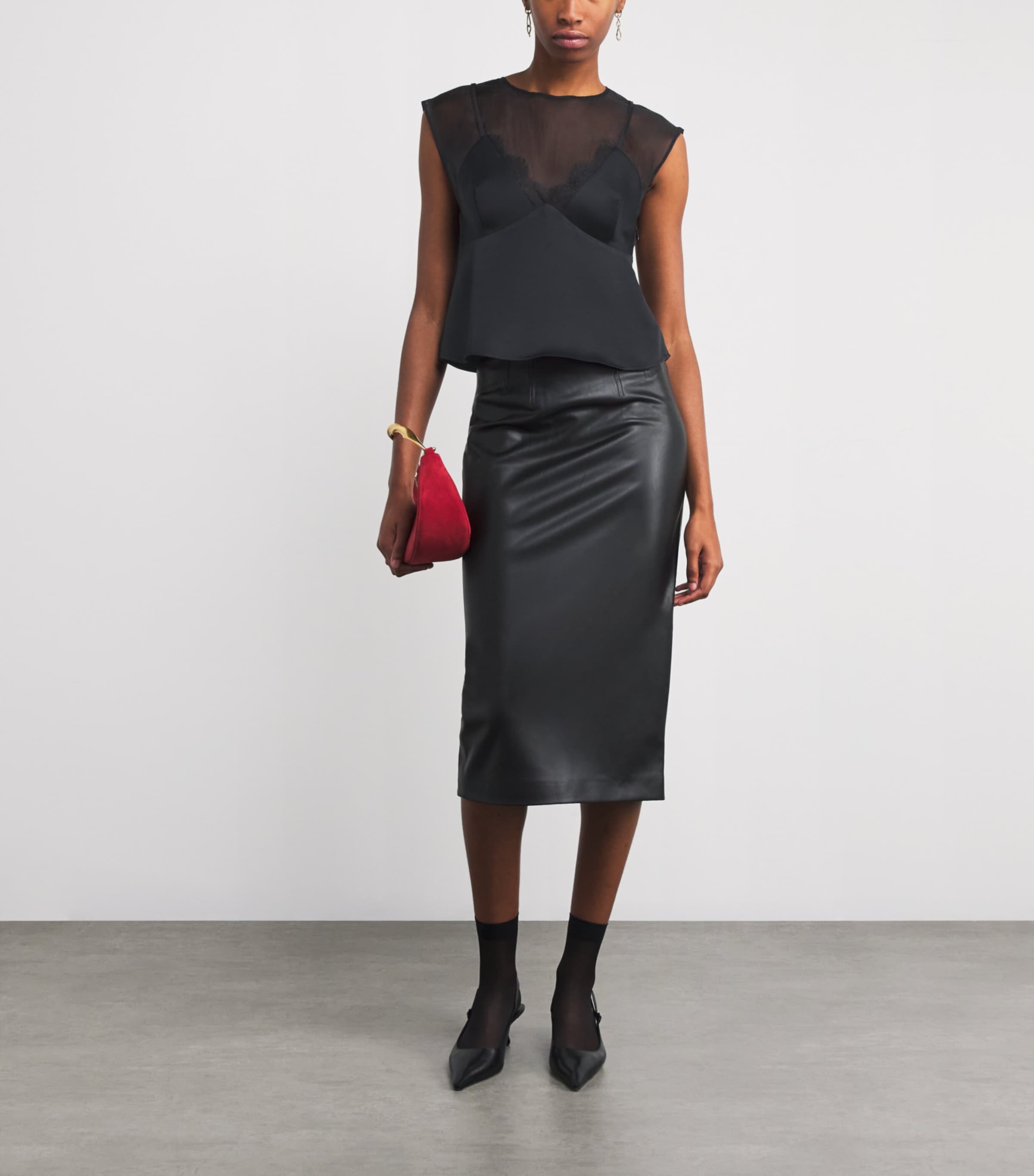 بلوزة من الدانتيل الساتان الأسود - أسود / 34 فر