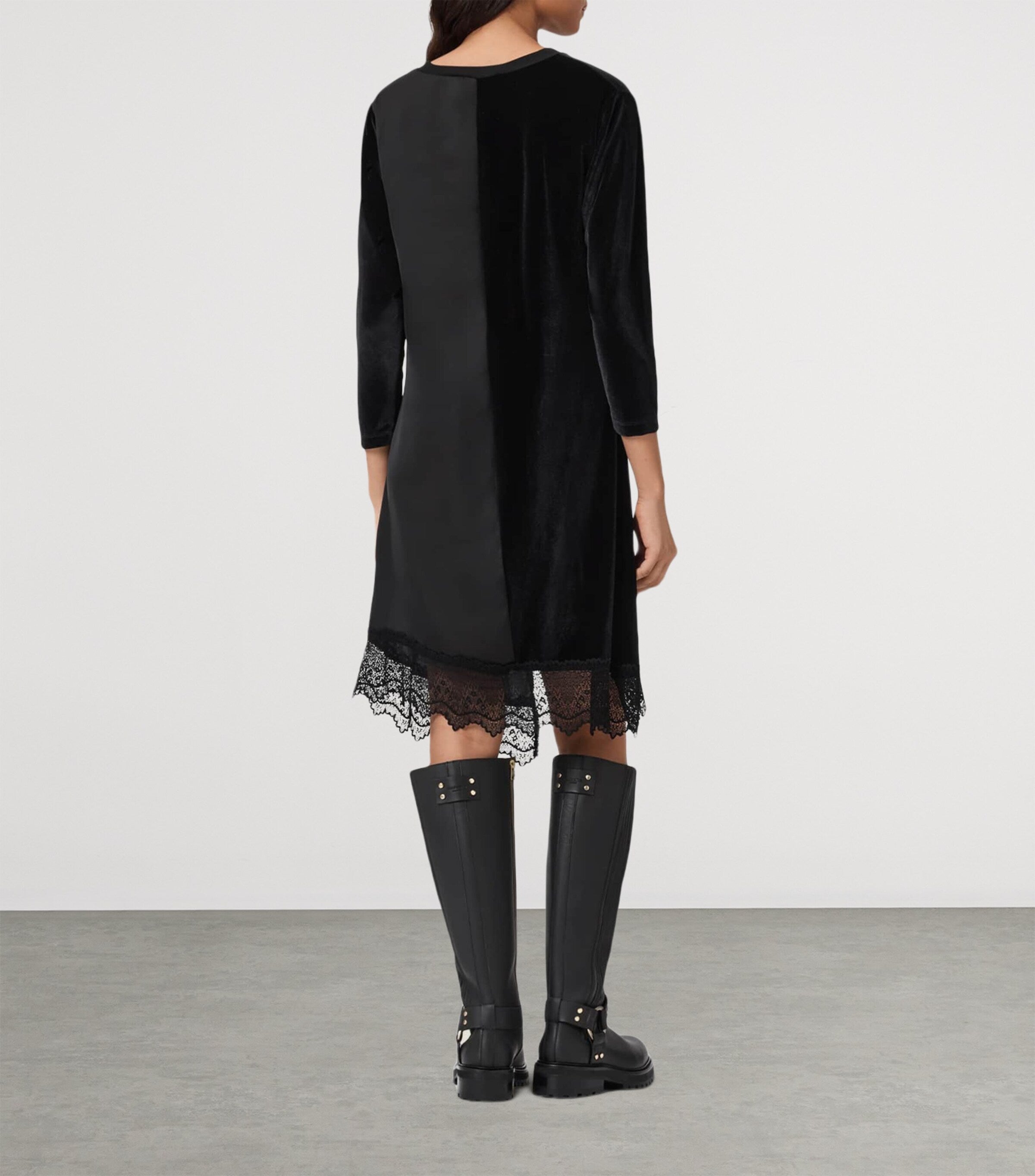 فستان لانا متوسط الطول من الساتان والمخمل الأسود - أسود / 8 المملكة المتحدة