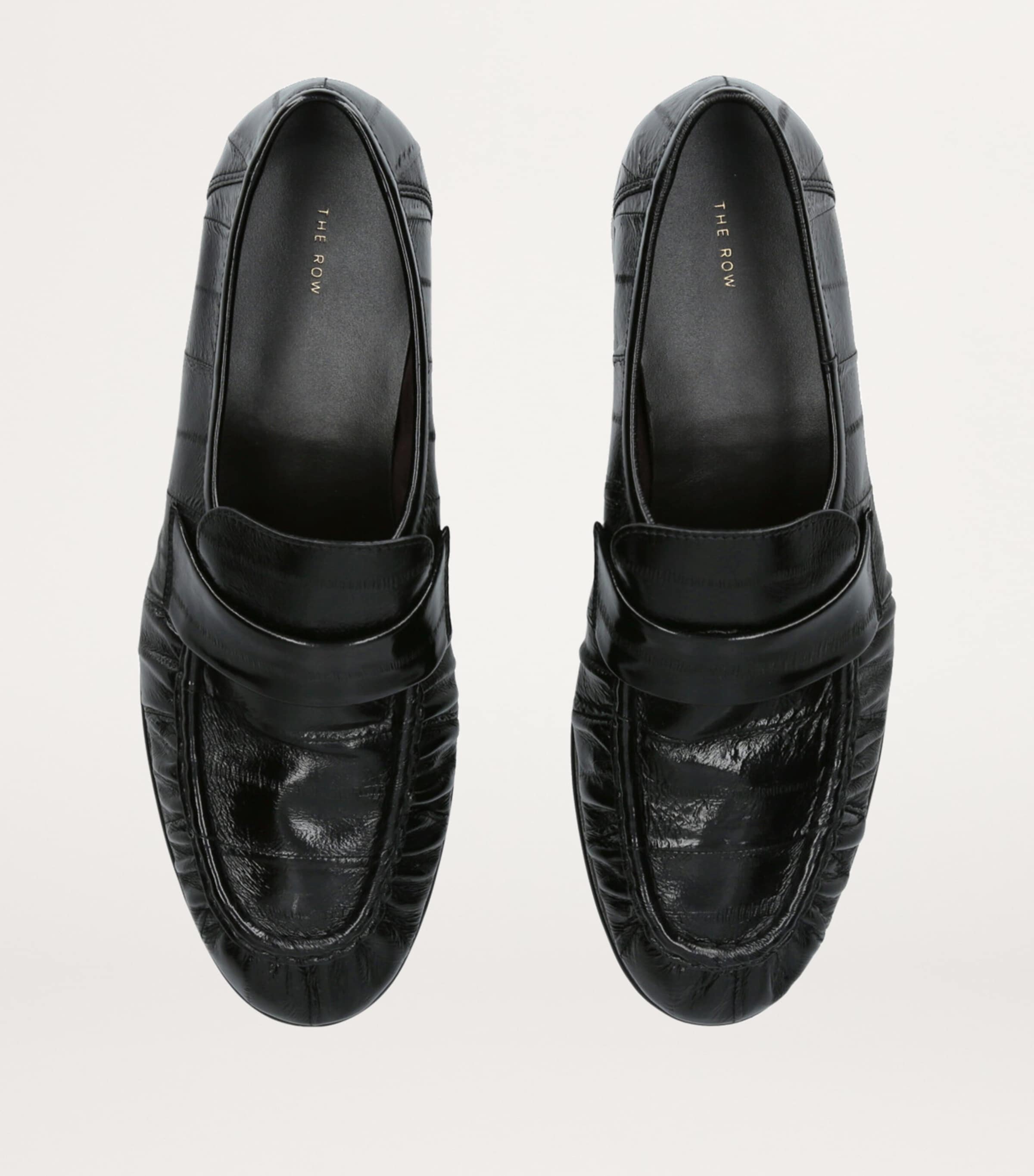 حذاء لوفر أسود ناعم من جلد ثعبان البحر