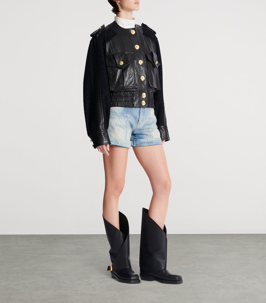 سترة جلدية سوداء مزينة بتويد - إيب نوار/نوار / 34 فر