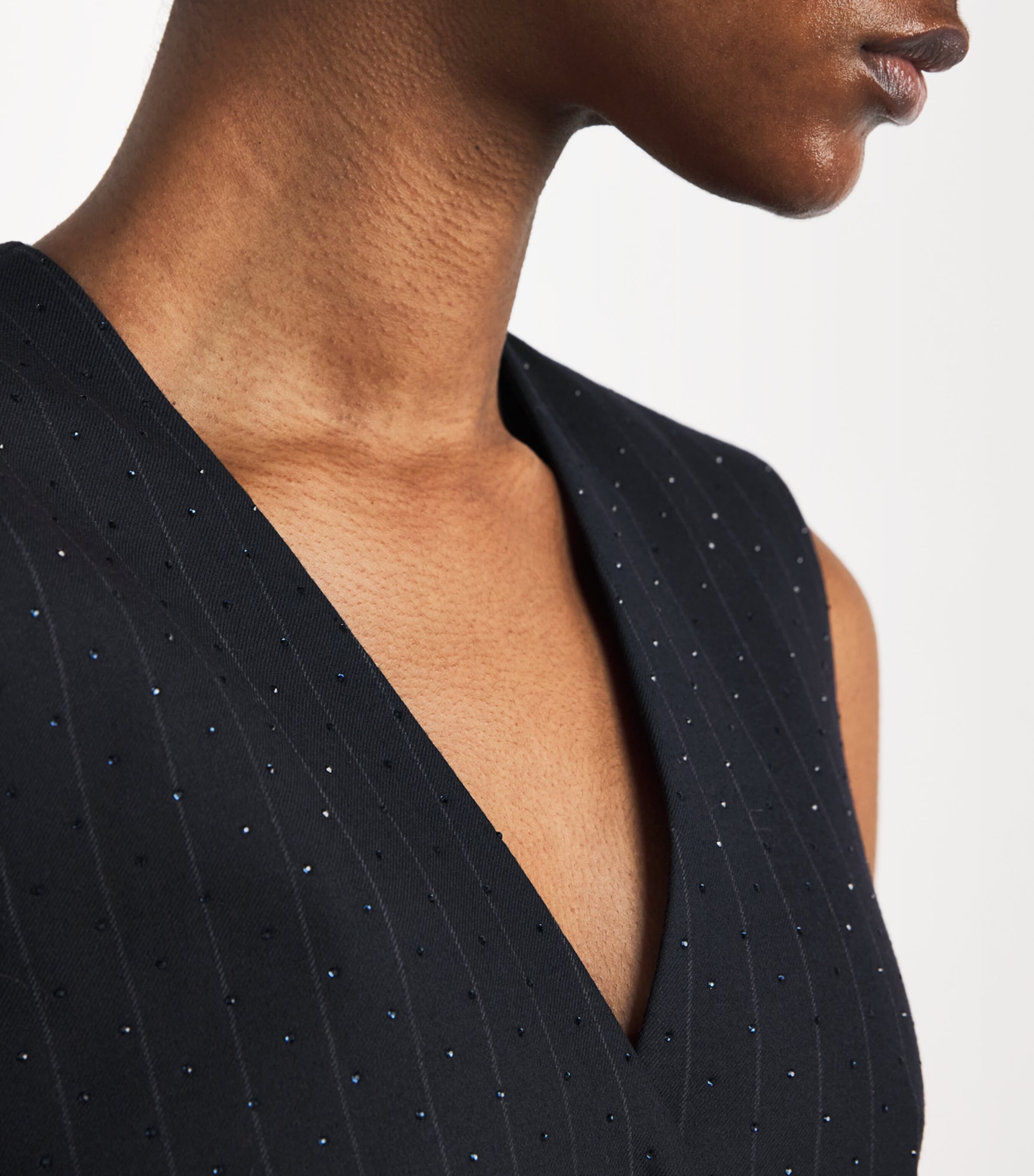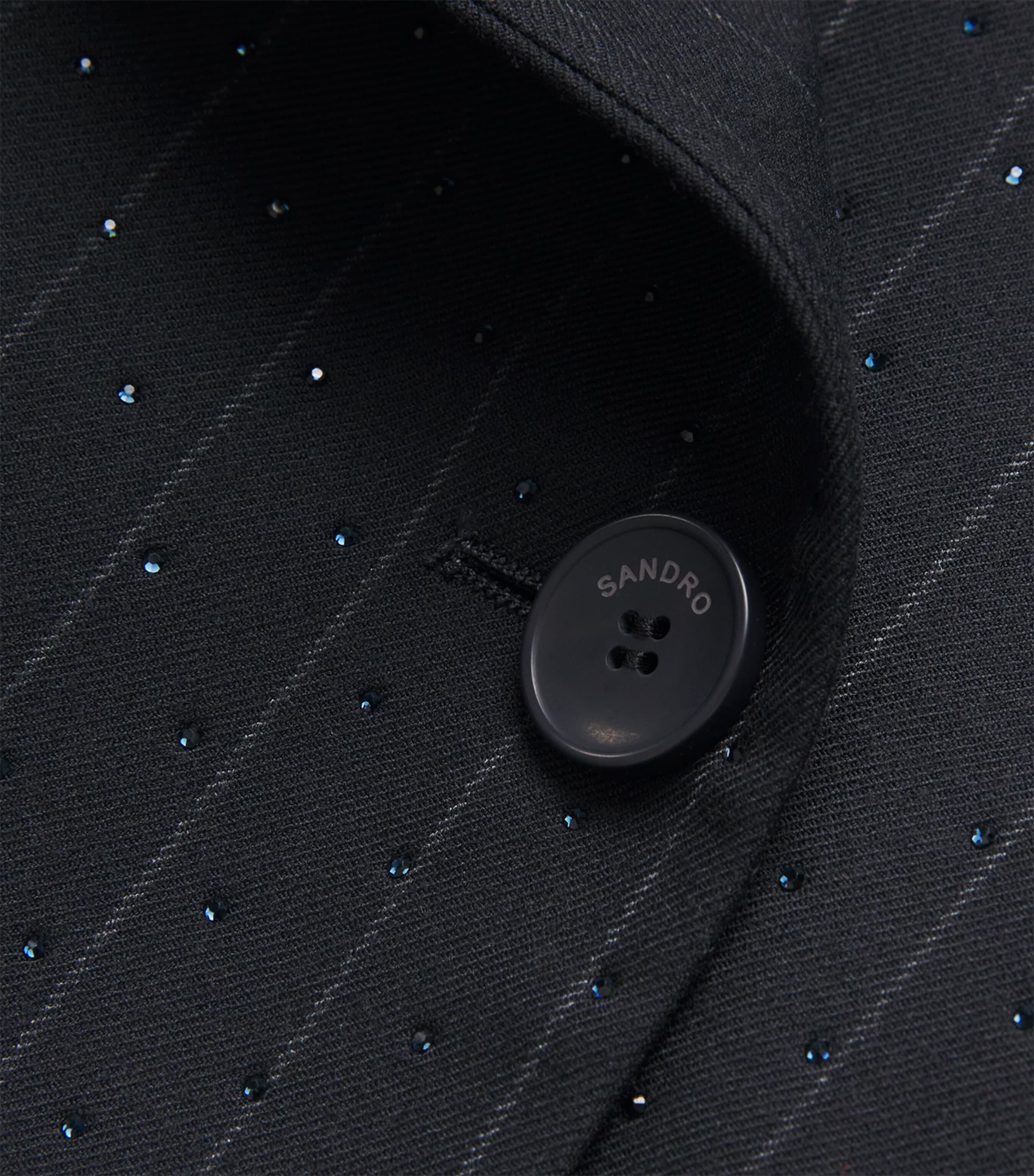 لا تقتصر الخطوط الأنيقة على القمصان والبدلات، كما يُثبت هذا الفستان القصير من ساندرو. صُمم هذا الفستان الأنيق على شكل صدرية، ويتميز بخطوط رفيعة كلاسيكية وزخارف رقيقة من أحجار الراين، مما يضفي لمسة من التألق على هذه القطعة الأنيقة.