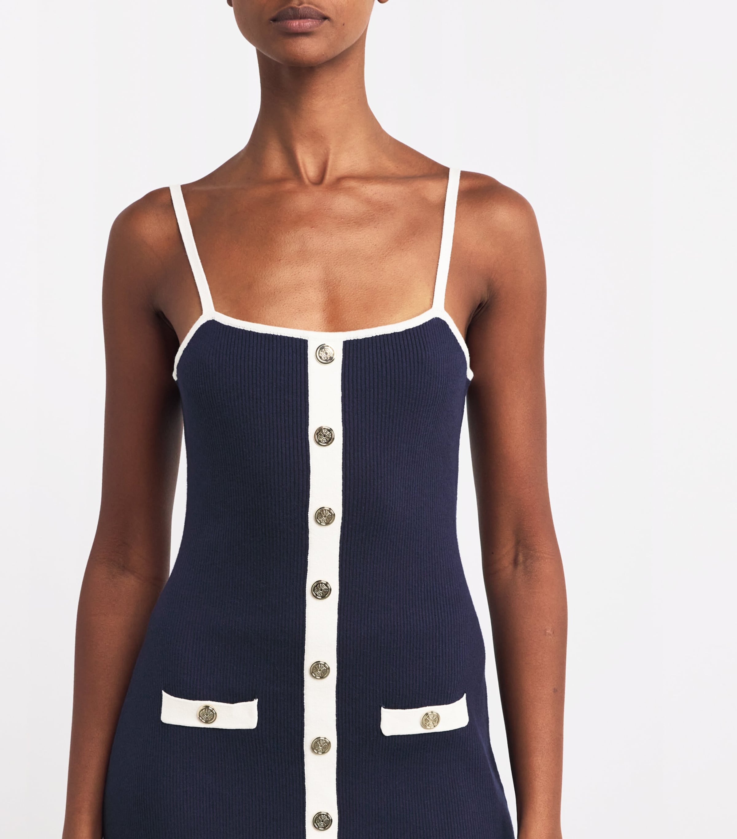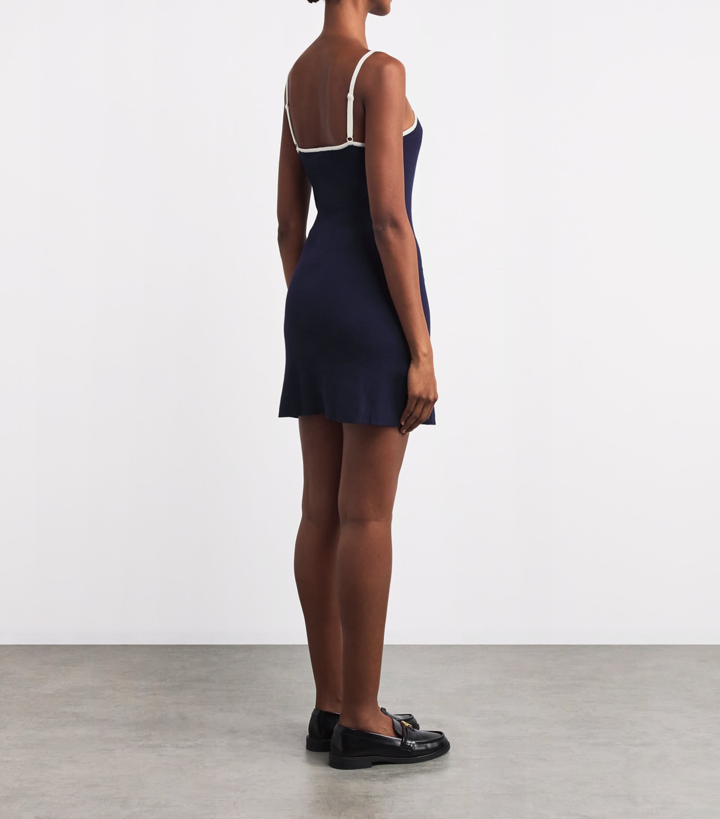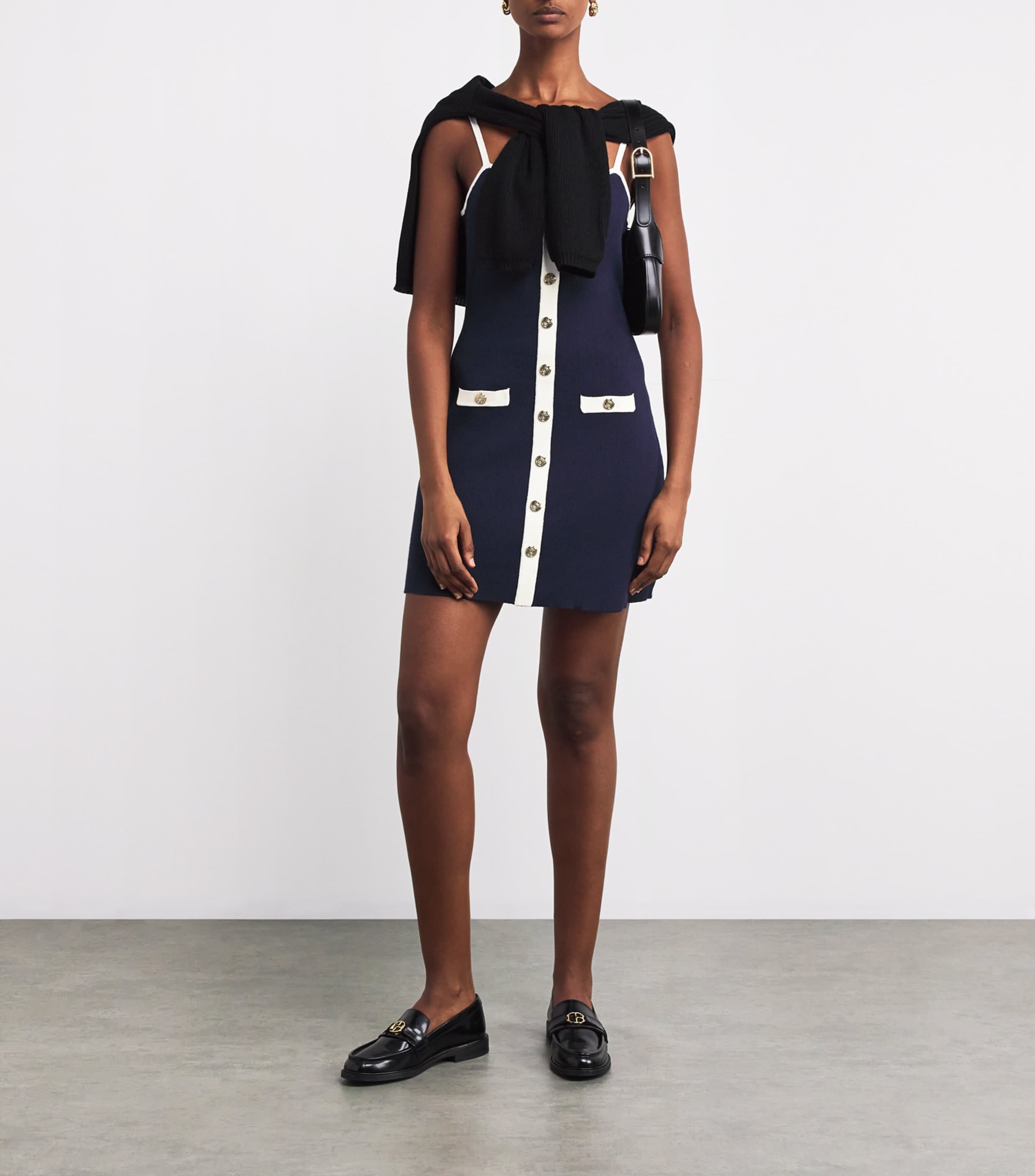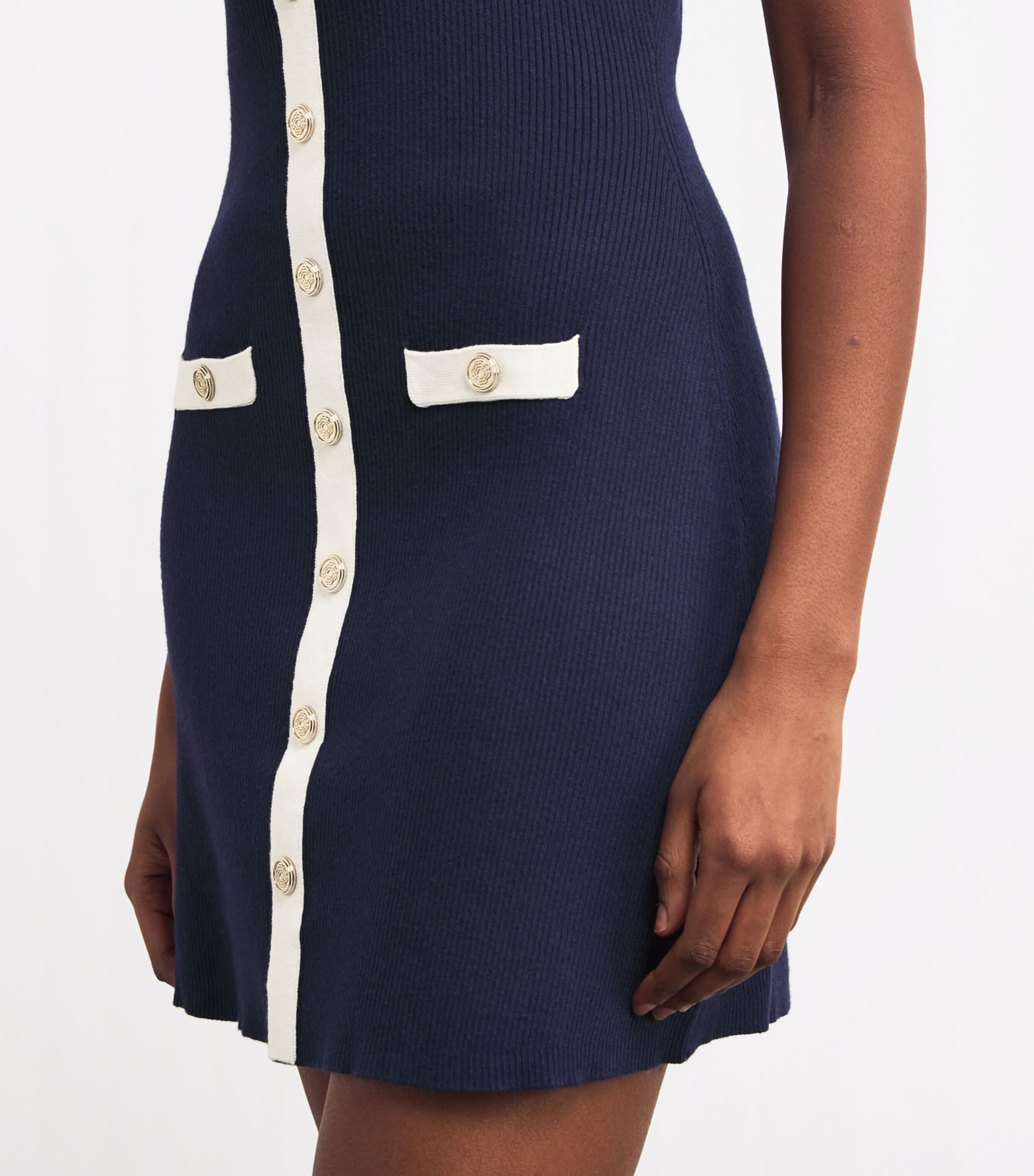 فستان قصير محبوك باللون الأزرق - البحرية / 40 فر