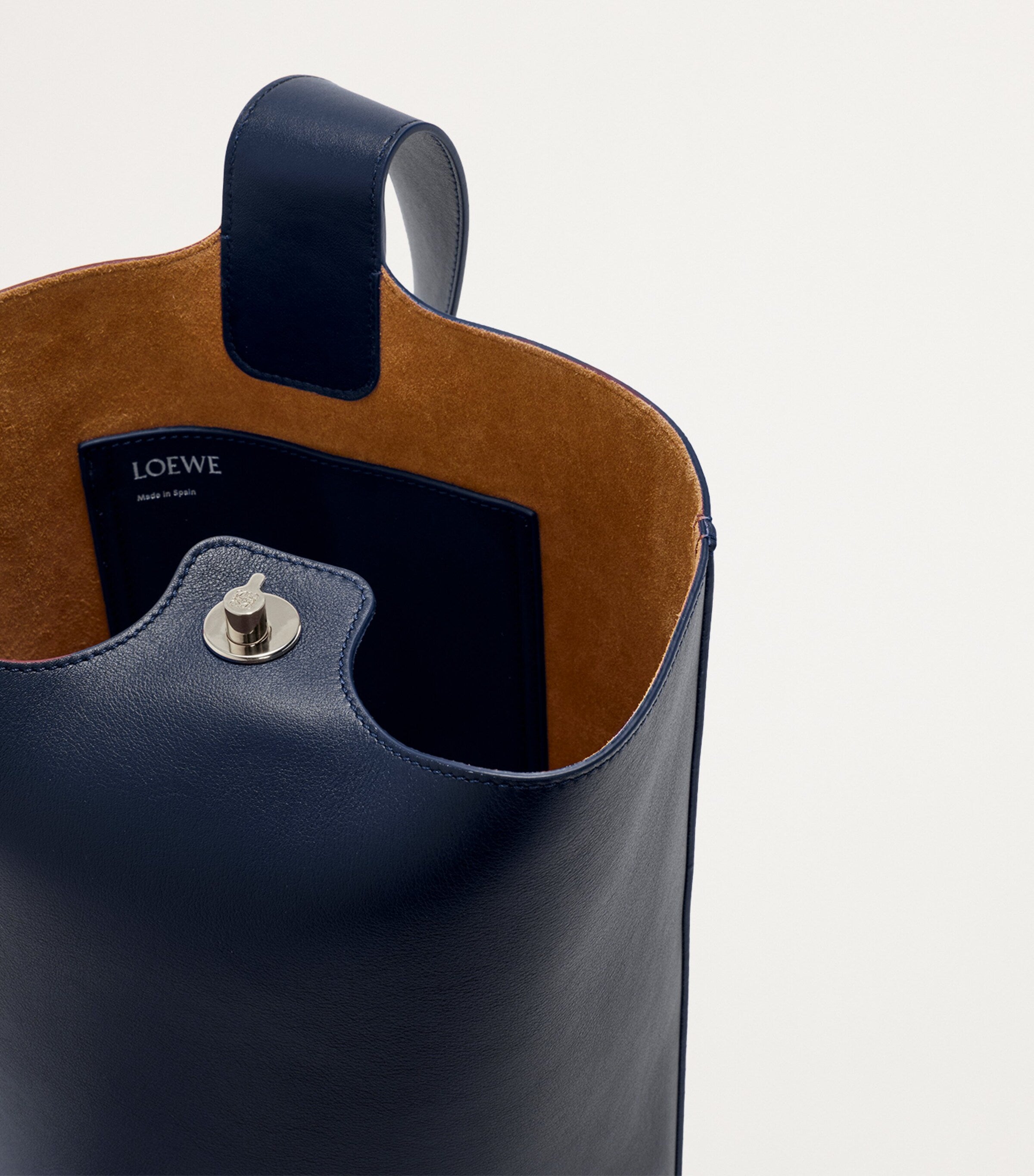 حقيبة دلو جلدية متوسطة الحجم باللون الأزرق
