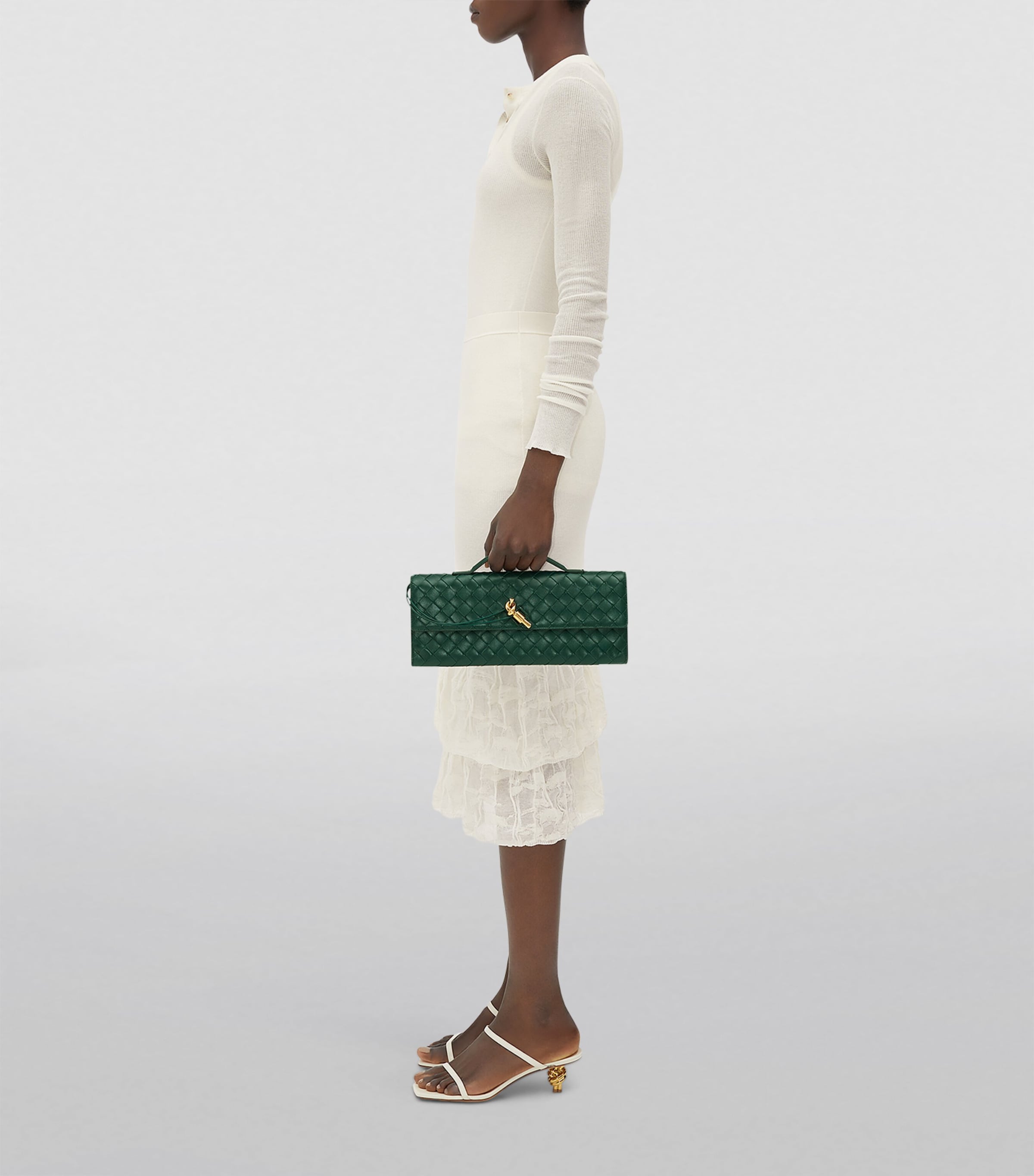 حقيبة كلاتش صغيرة من بوتيغا فينيتا باللون الأخضر ومقبض علوي من الجلد