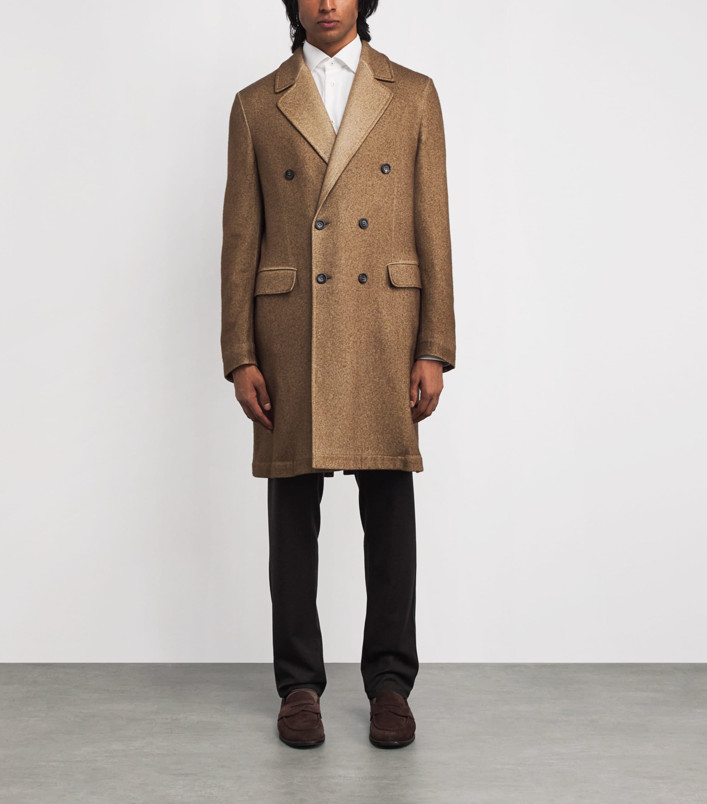 هذا المعطف، المنسوج في إيطاليا من مزيج كولومبو المميز من الكشمير والحرير، دليلٌ على التزام العلامة التجارية بالألياف النادرة والحرفية الراقية. منذ ستينيات القرن الماضي، تخصصت كولومبو في كل مرحلة من مراحل التصنيع - من التوريد إلى التشطيب - مع بقاء الكشمير جوهر هويتها.