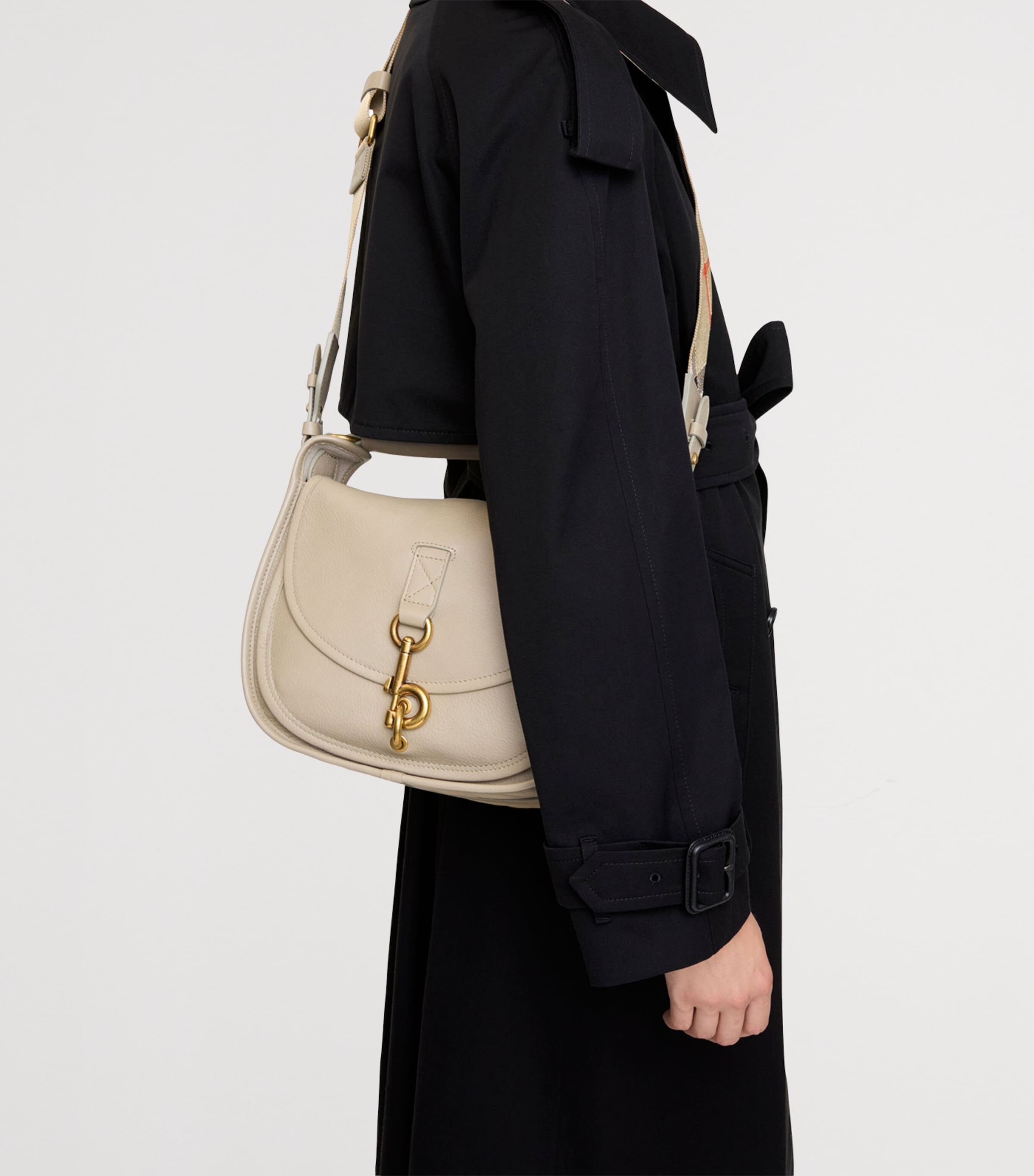 حقيبة بربري صغيرة من جلد العجل باللون البيج مع مشبك على شكل حرف B
