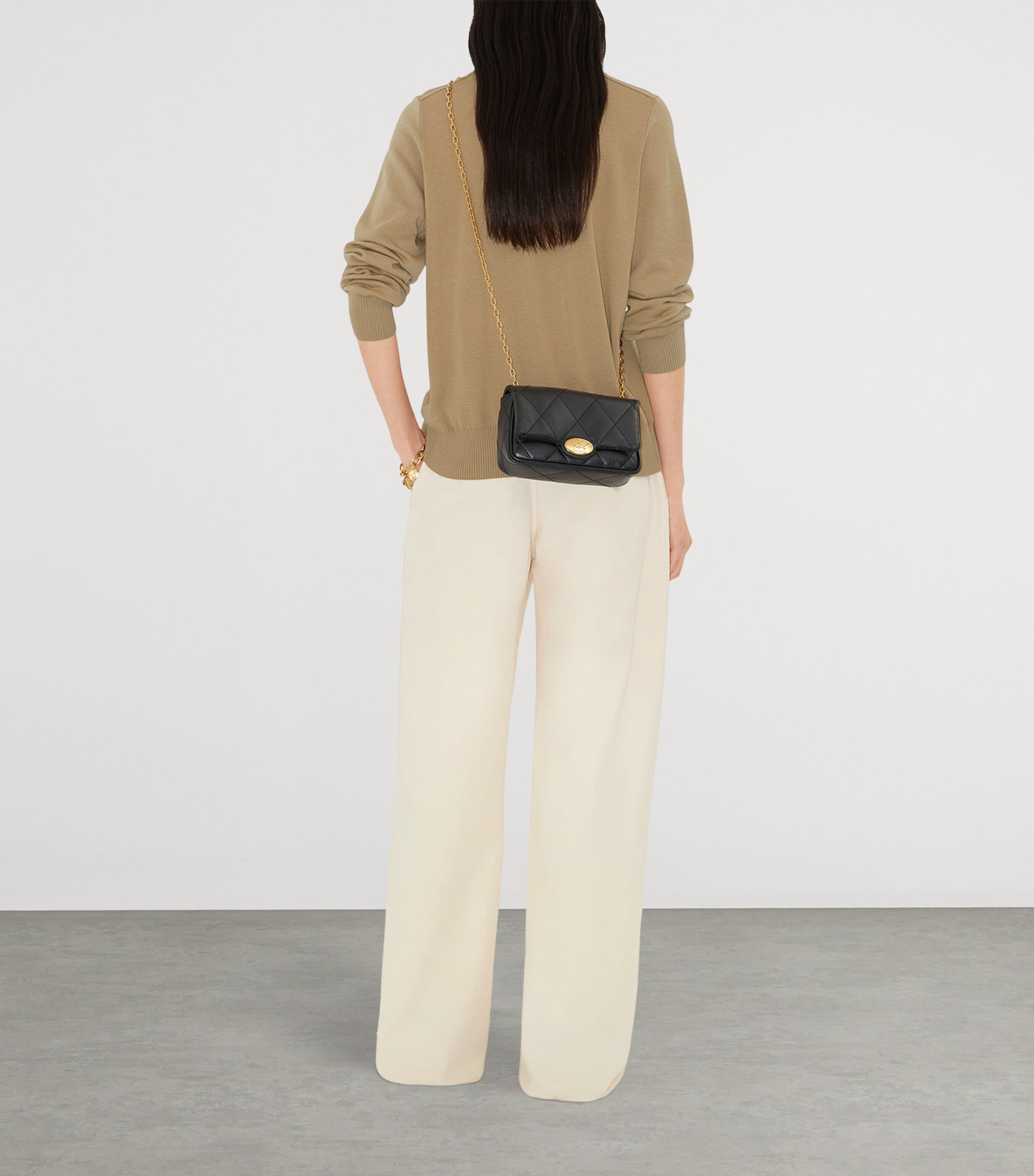 عندما تلتقي الرقة البريطانية بالحرفية الإيطالية، تكون النتيجة خالدة - كما يتضح في حقيبة كلاتش بربري المبطنة المصنوعة من جلد العجل. يُشير المشبك الذهبي، المنقوش بتصميم فارس الفروسية، إلى تراث الدار، مُبرزًا ماضيها العريق ببراعة وتألق.