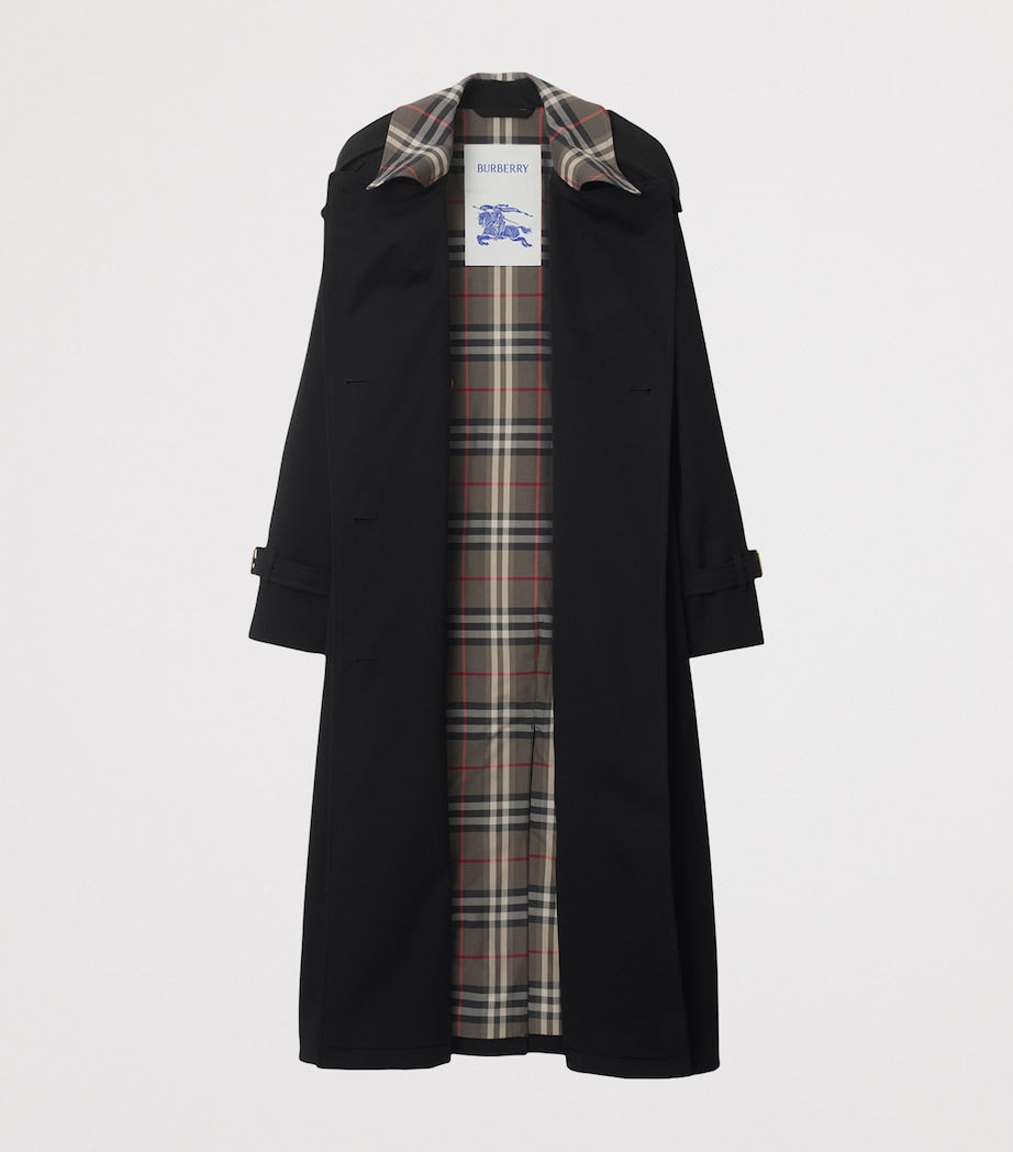 معطف ترنش طويل أسود من بربري كاسلفورد - أسود / 14