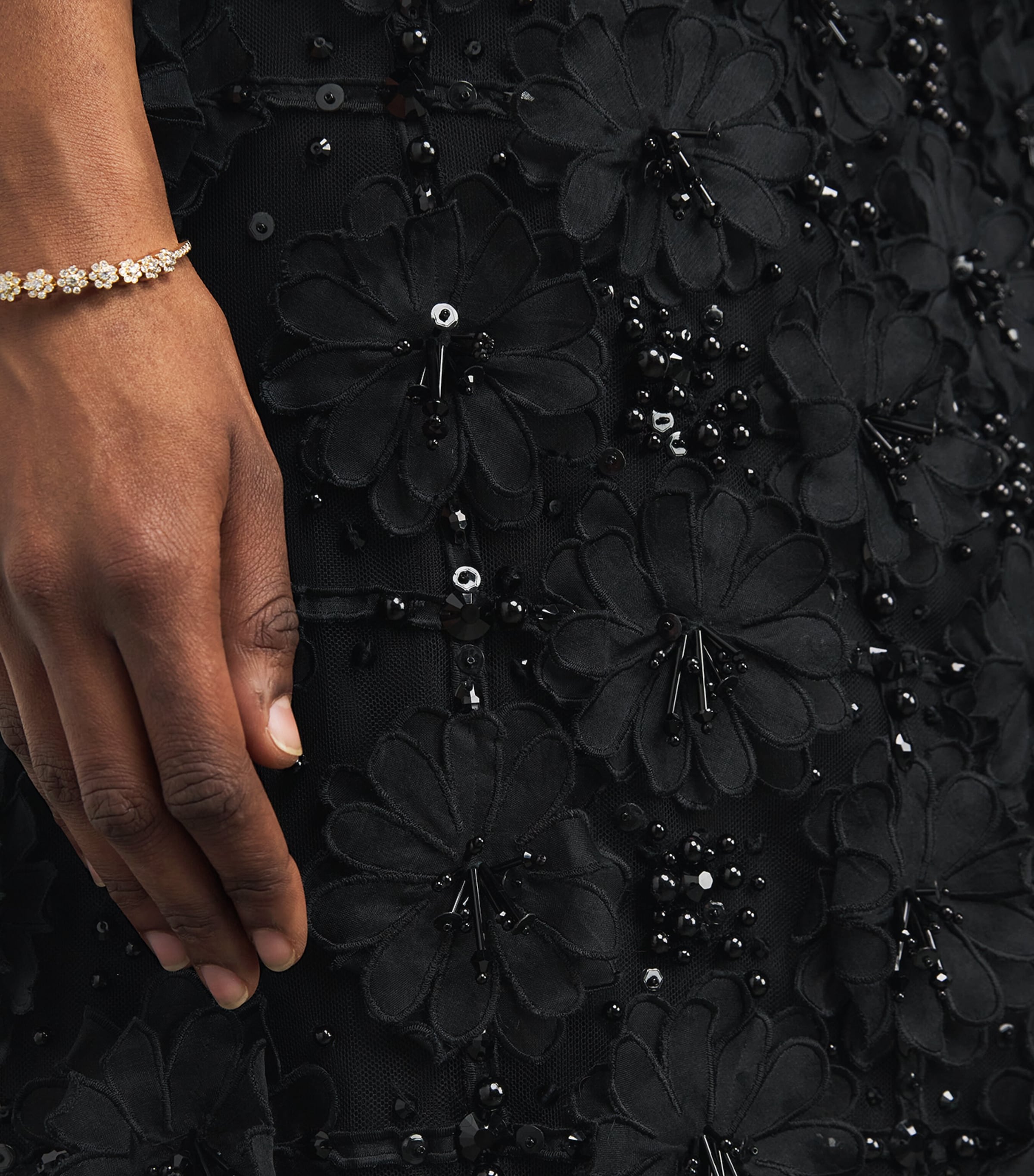 تنورة ماكسي سوداء مزينة بالورود من كارولينا هيريرا