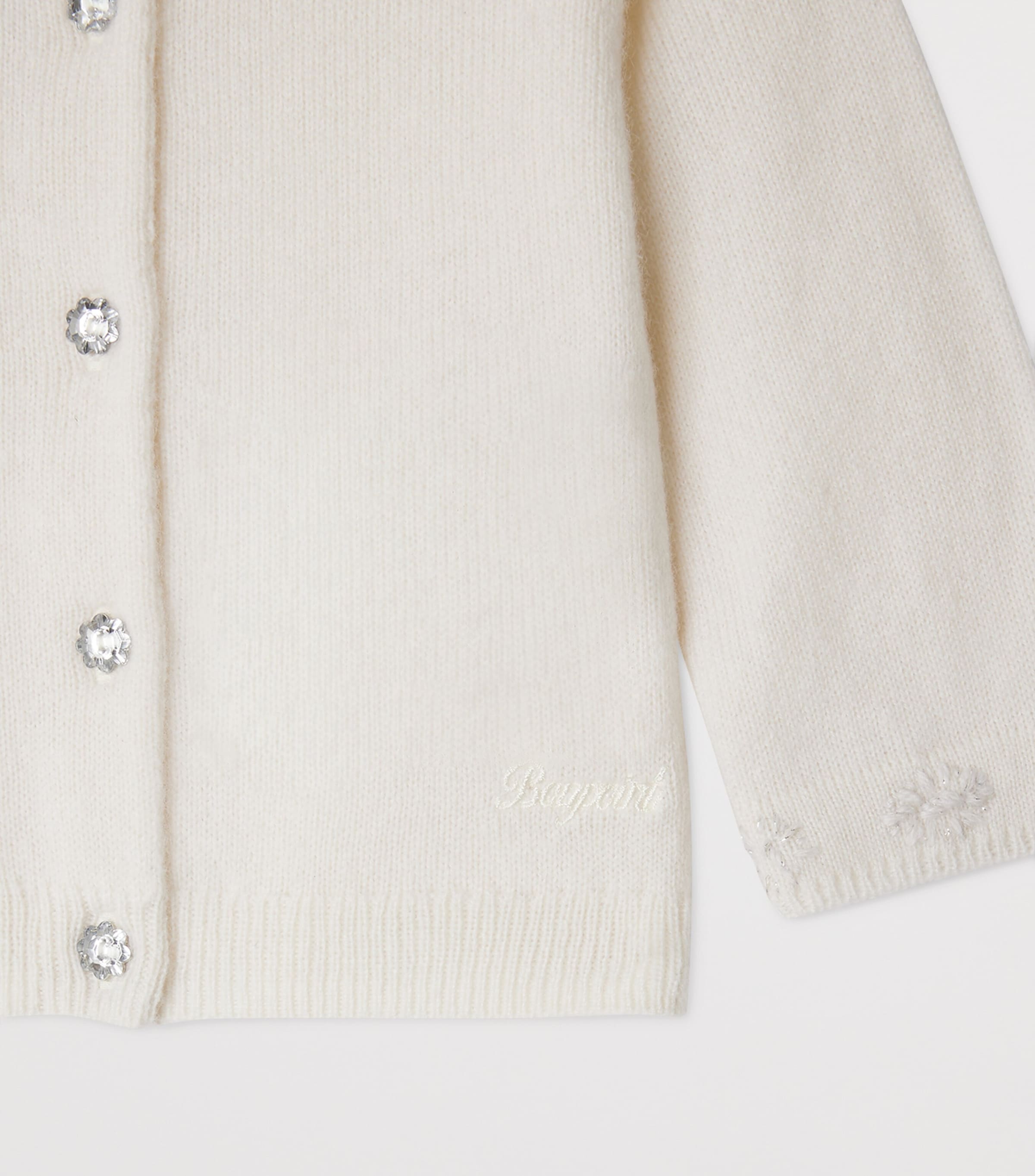 Bonpoint’s savoir-faire for delicate craftsmanship and whimsical elegance is encapsulated in this dainty Teyana cardigan. Its pure cashmere composition envelops your little one in cosiness while remaining breathable, while its iridescent button-up offers a charming shimmery finish – fit for a fairy.