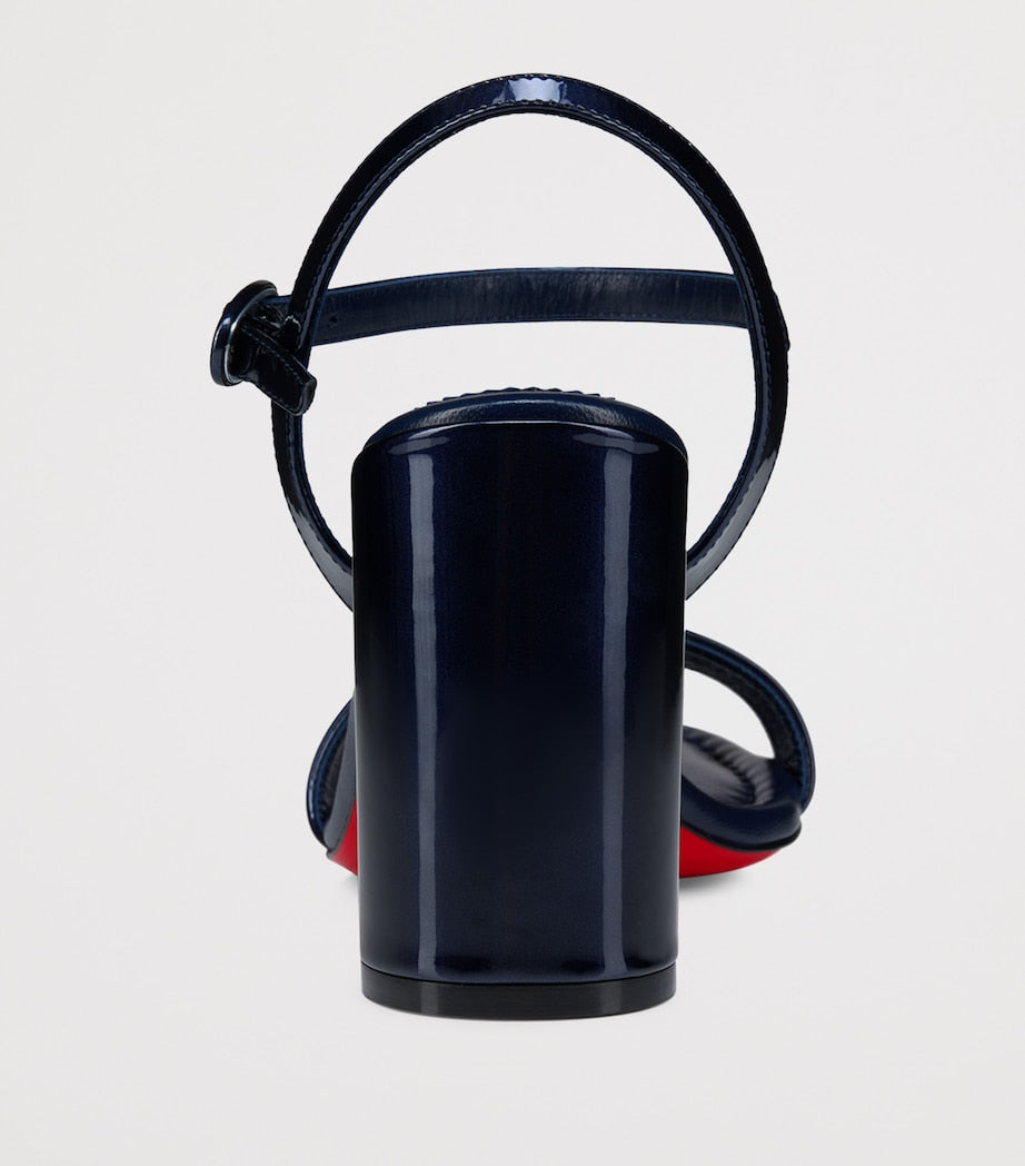 صندل كريستيان لوبوتان ميس جين بكعب عالٍ من الجلد اللامع باللون الأزرق البحري مقاس 85