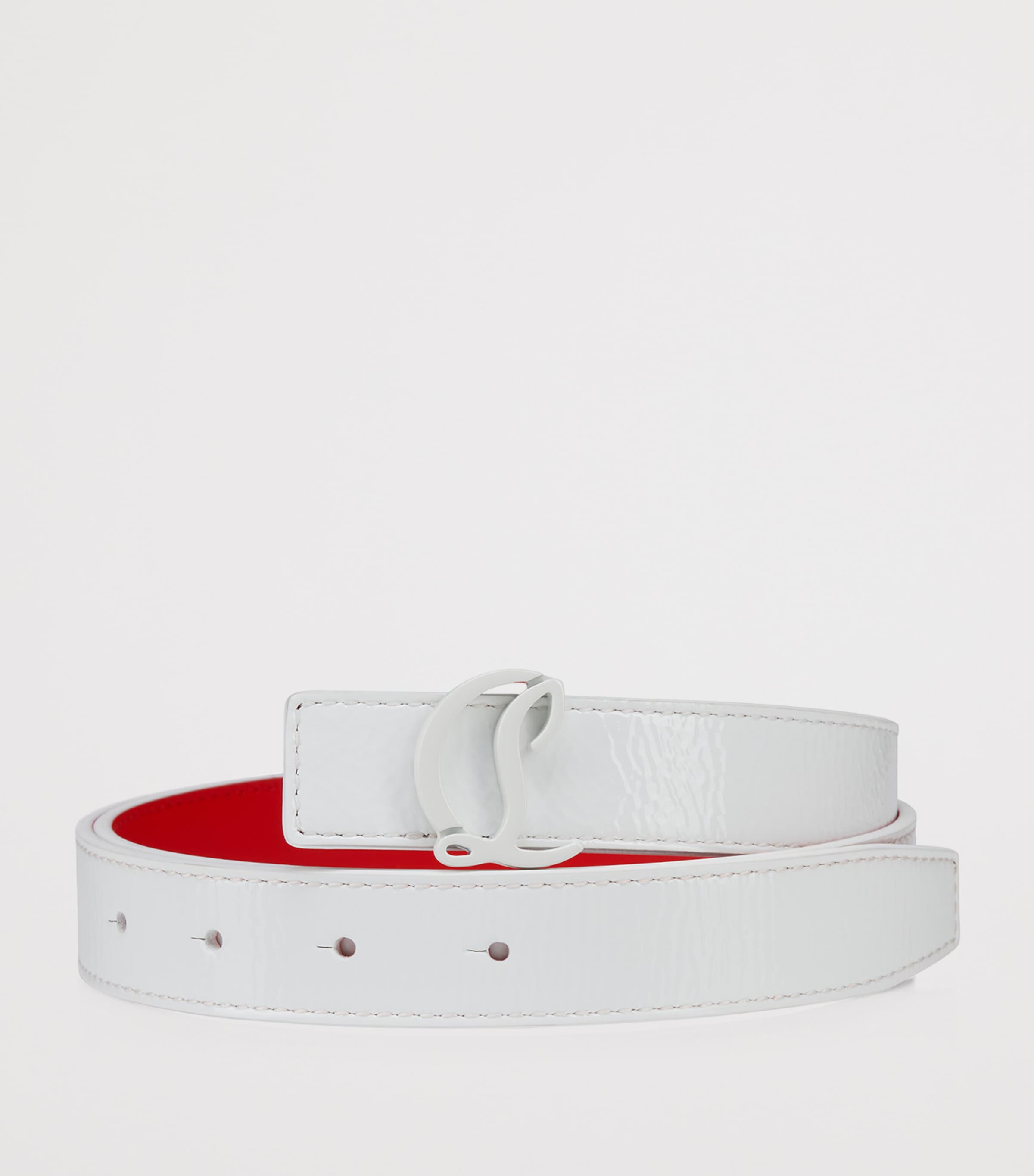 حزام كريستيان لوبوتان Loubi54 الأبيض المصنوع من الجلد اللامع القابل للعكس