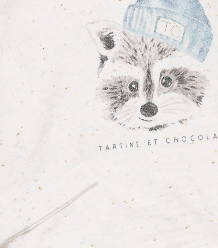 تيشيرت قطني مخلوط بطبعة راكون (من 3 أشهر إلى 4 سنوات)