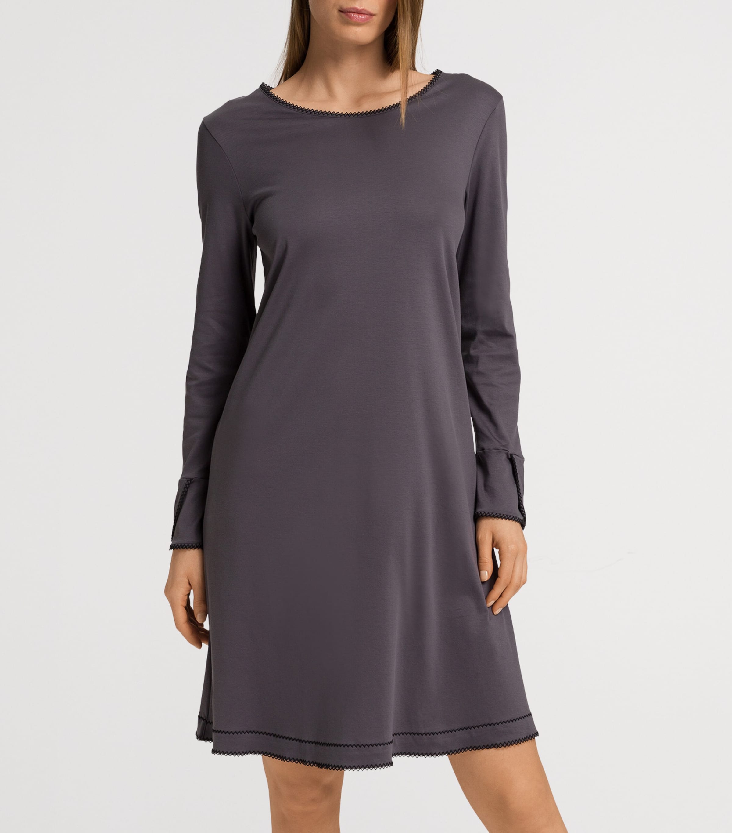 قميص نوم أونا قطني بأكمام طويلة لؤلؤي أسود - اللؤلؤة السوداء / S