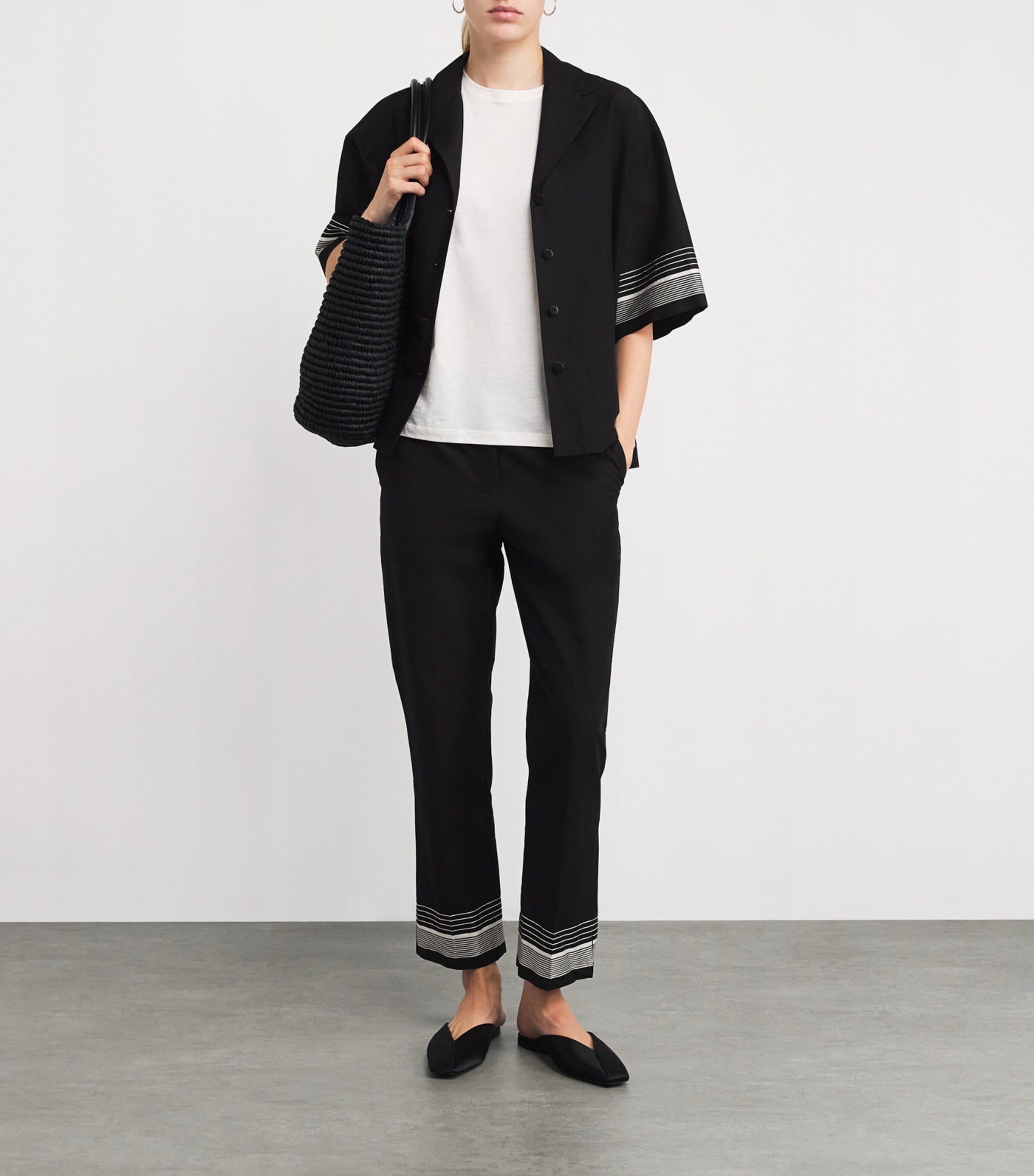 قميص جيرسي من القطن والحرير باللون الأبيض