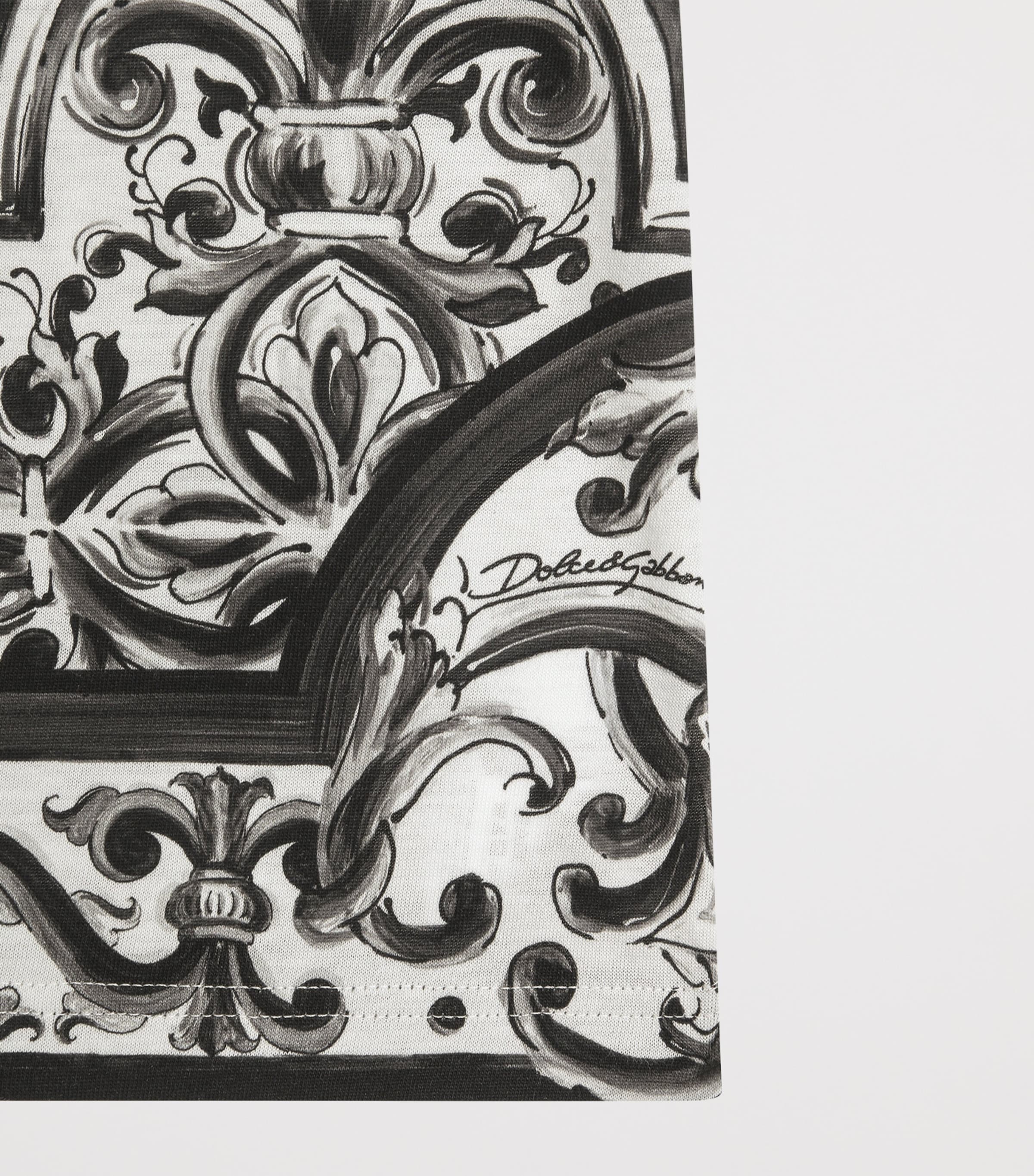 هذا التيشيرت، من مجموعة دولتشي آند غابانا كيدز الراقية لملابس الأطفال، يمنحهم إطلالة مريحة مستوحاة من تاريخ العلامة التجارية العريق. مصنوع من قطن جيرسي، ويتميز بقصة مريحة ونقشة بالأبيض والأسود، تذكرنا بجمال بلاط البحر الأبيض المتوسط.
