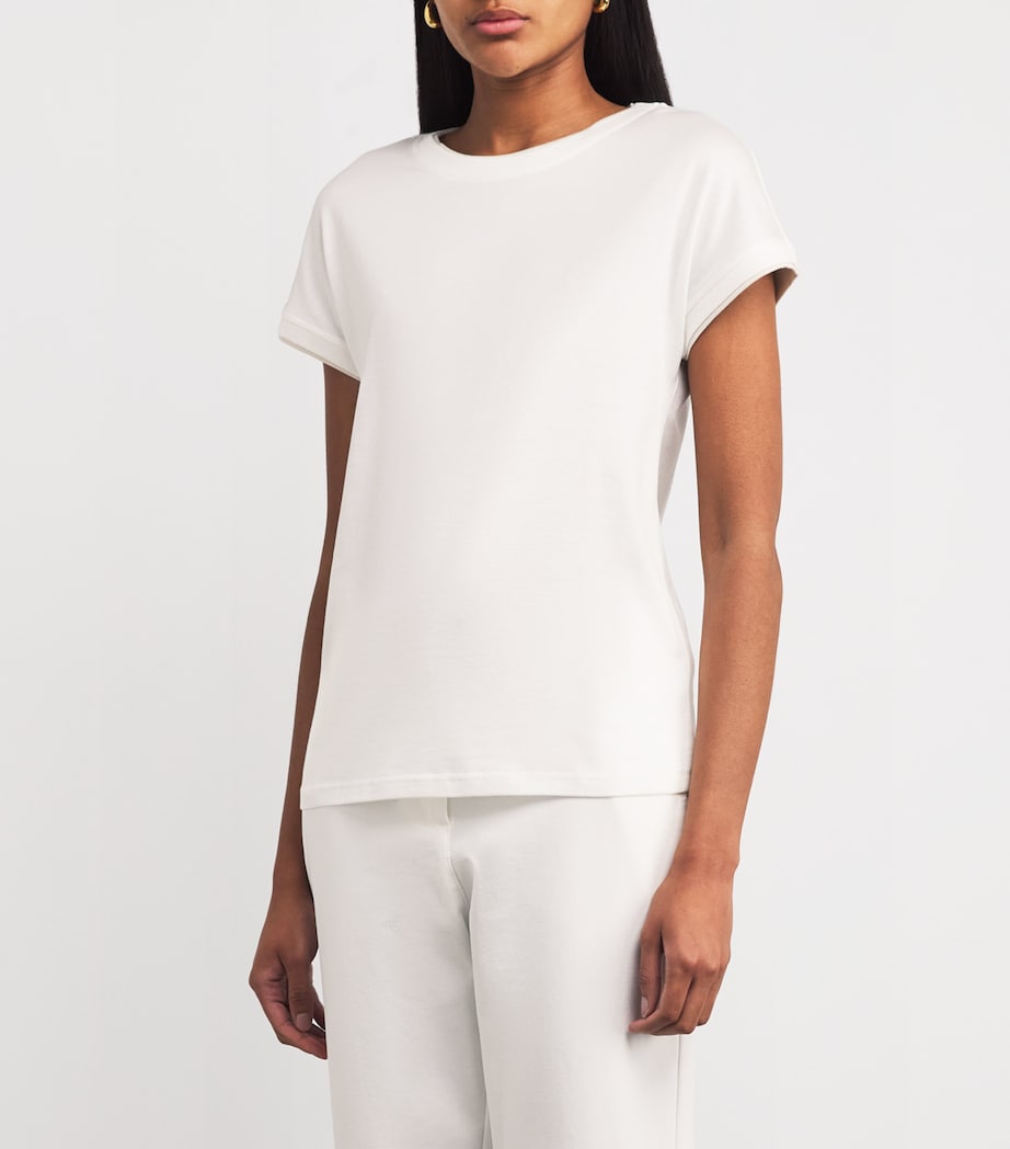 تي شيرت Eleventy White Cotton بتفاصيل متباينة وأكمام قصيرة