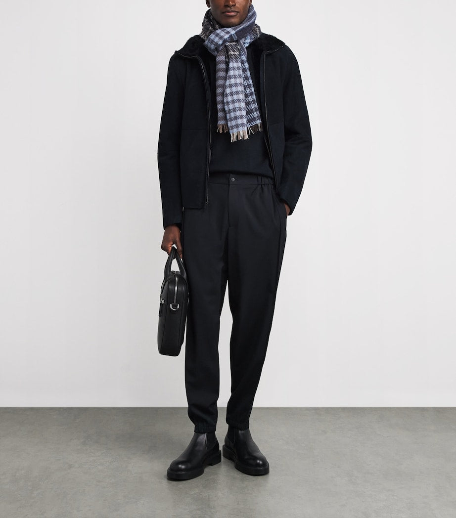 سويت شيرت إمبوريو أرماني أزرق من جلد الغزال بياقة دائرية