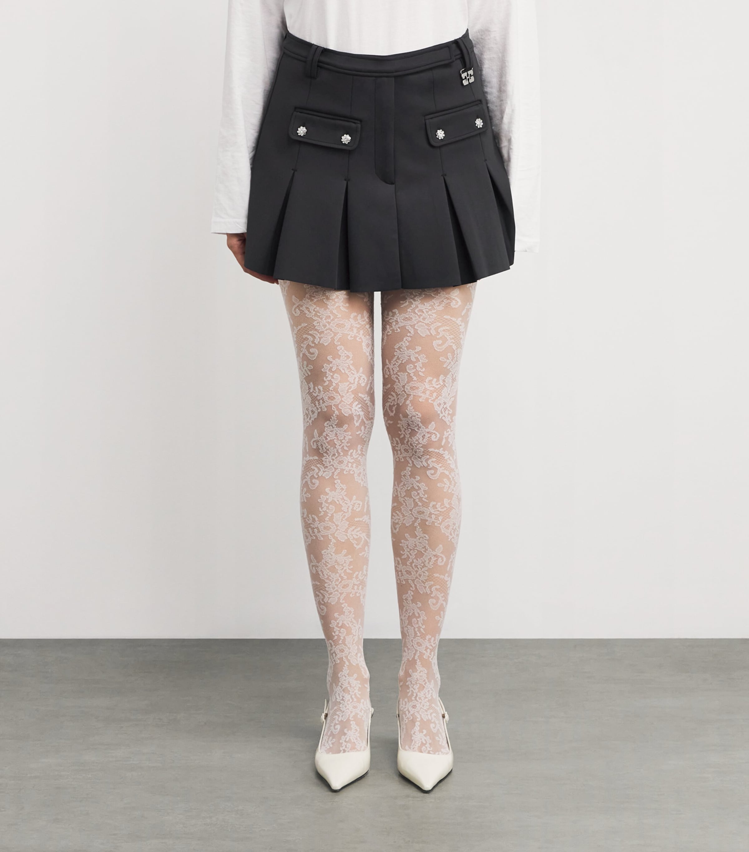 تنورة قصيرة مطوية من النيوبرين باللون الأسود من GANNI - 252 شبح / 36 فر