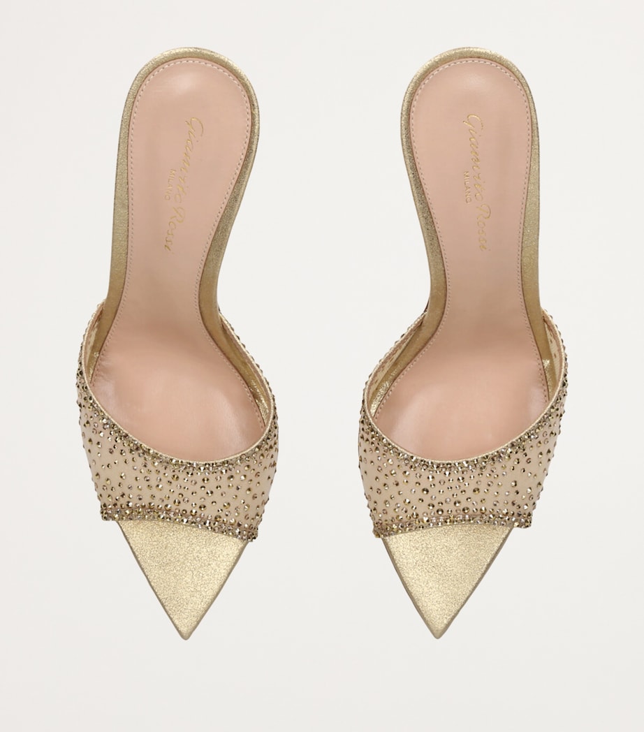 حذاء رانيا ميولز ذهبي مزين من جيانفيتو روسي رقم 85