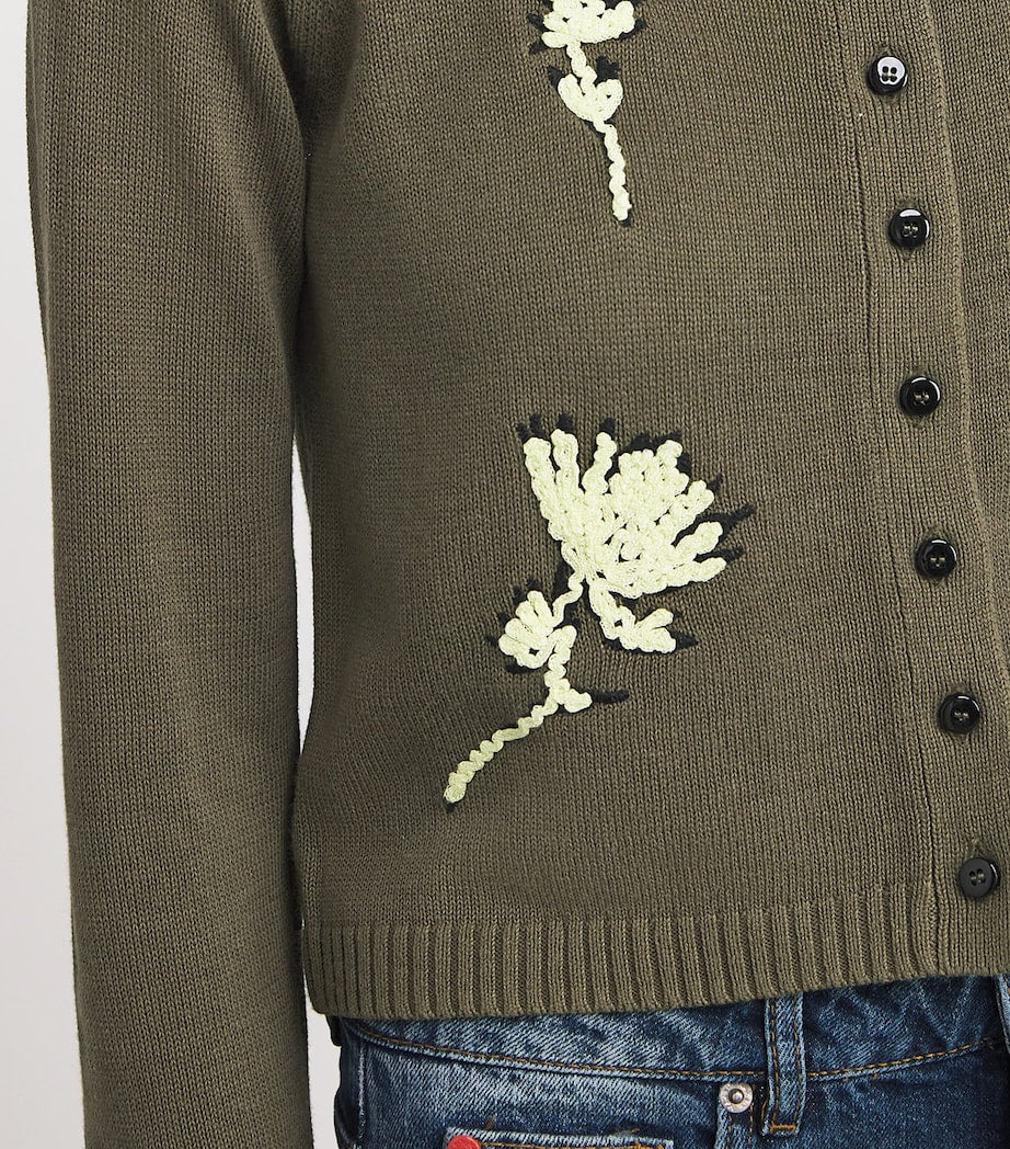 كارديجان جاكار مطرز بالزهور باللون الأخضر - كاكي / S