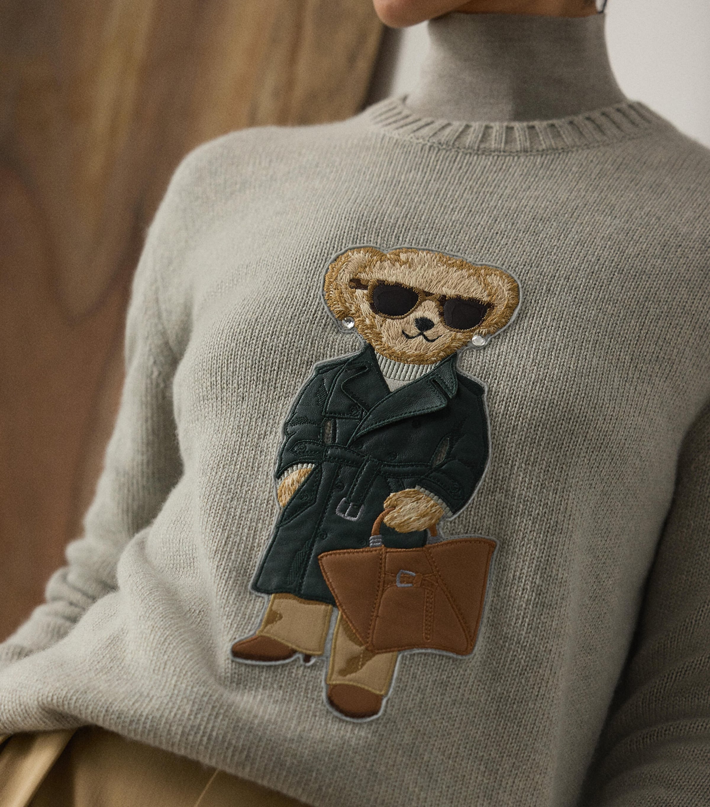سترة بولو دب من الكشمير الرمادي - مزيج الرمادي اللؤلؤي / XS