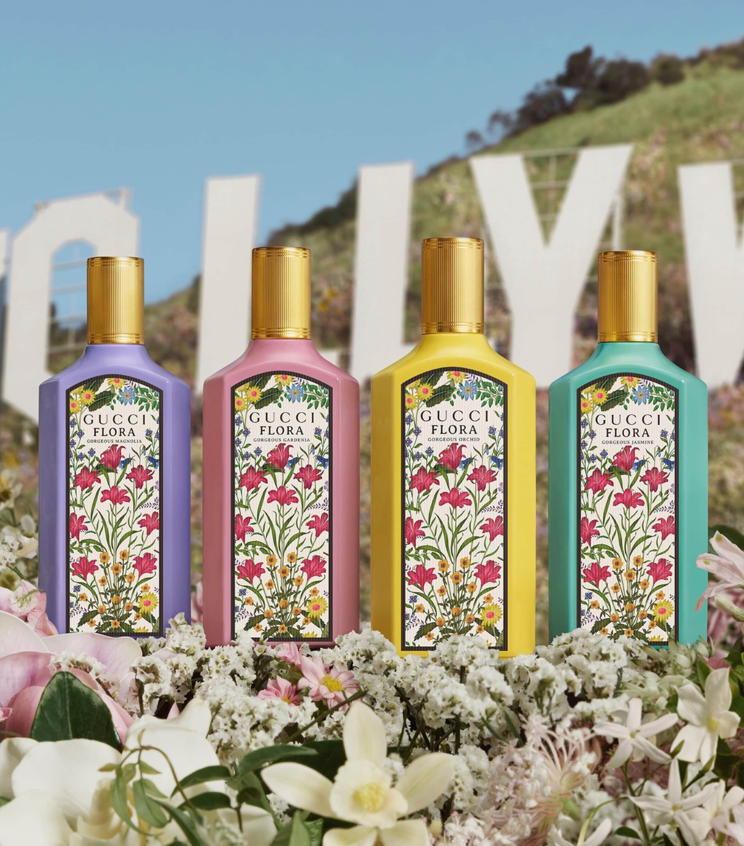 This flower-packed fragrance is housed in a new, lacquered bottle displaying the House’s Flora pattern.