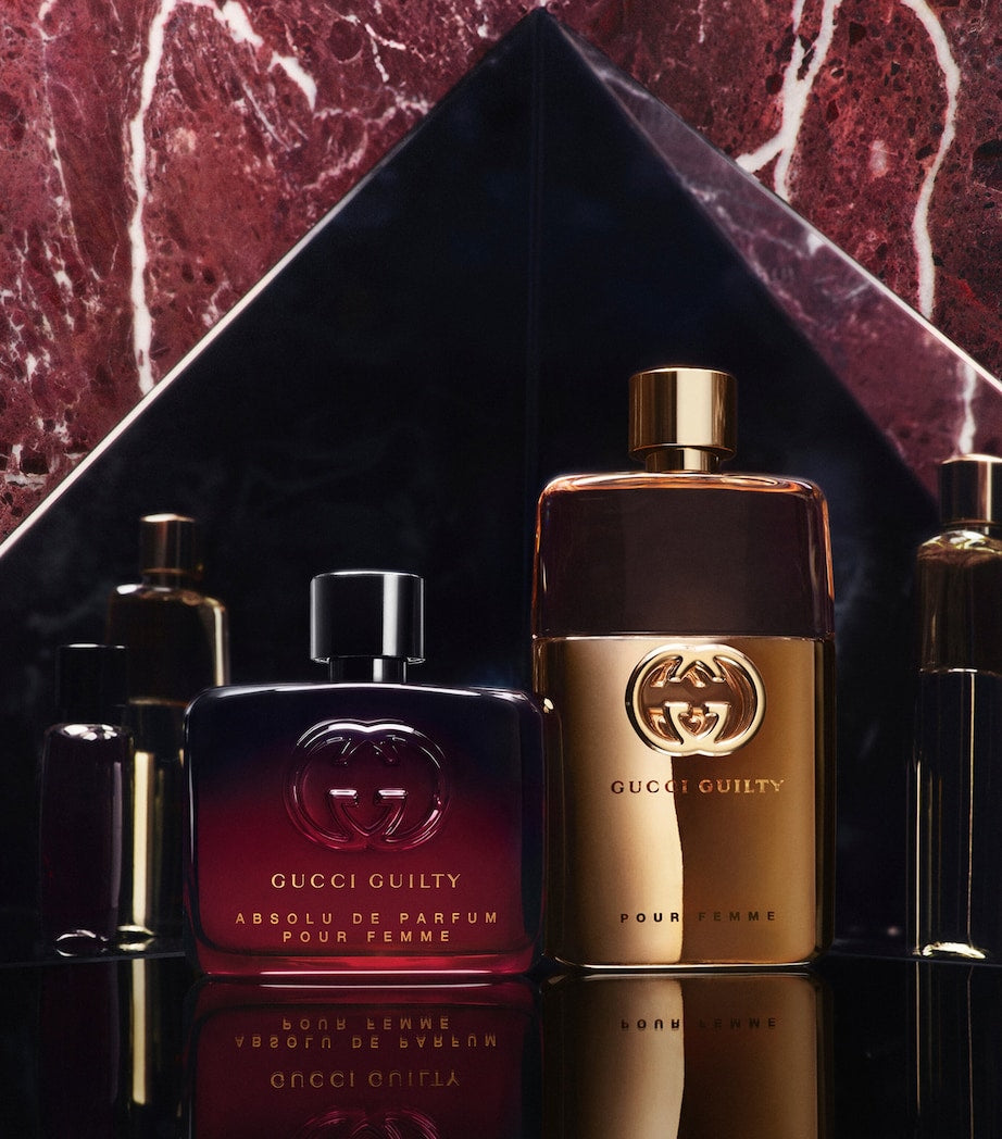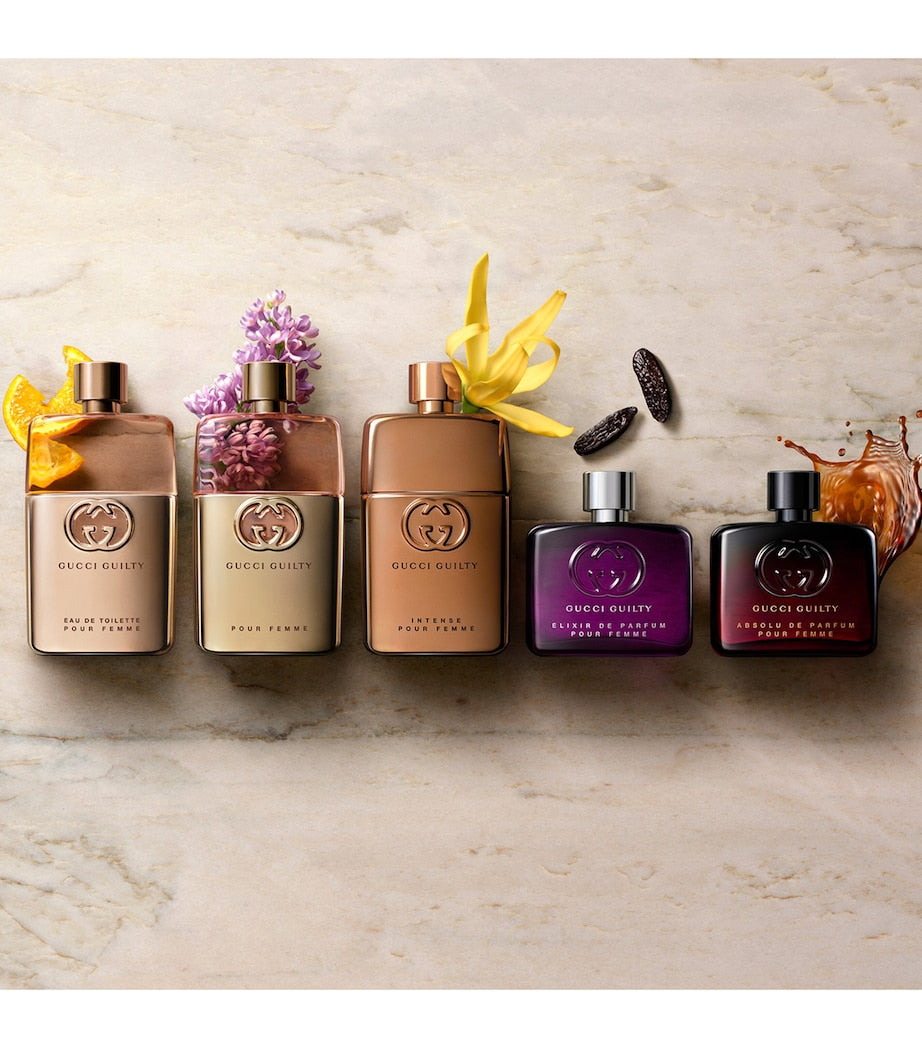 Gucci Guilty Absolu de Parfum Pour Femme is an intoxicating floral ambery fragrance that makes a statement. The dark coffee amaretto accord adds velvety richness, complemented by the creamy warmth of tonka bean absolute, while a subtle wisteria accord brings a sweet, textured nuance. It's a scent that captivates, leaving a lasting impression long after it’s worn.