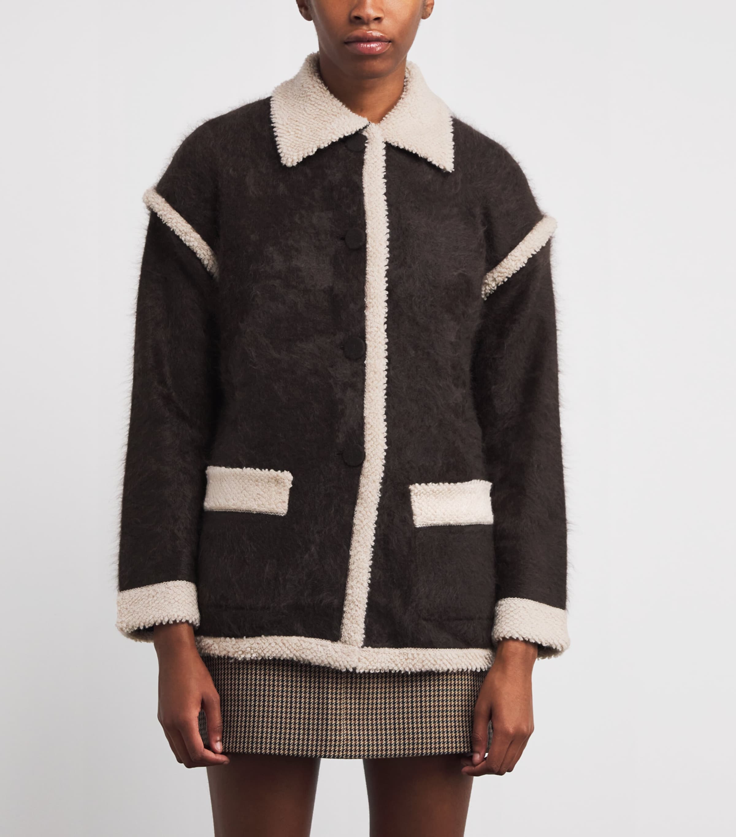 سترة ضيف الإقامة من الكشمير البني مع حواف بوكليه