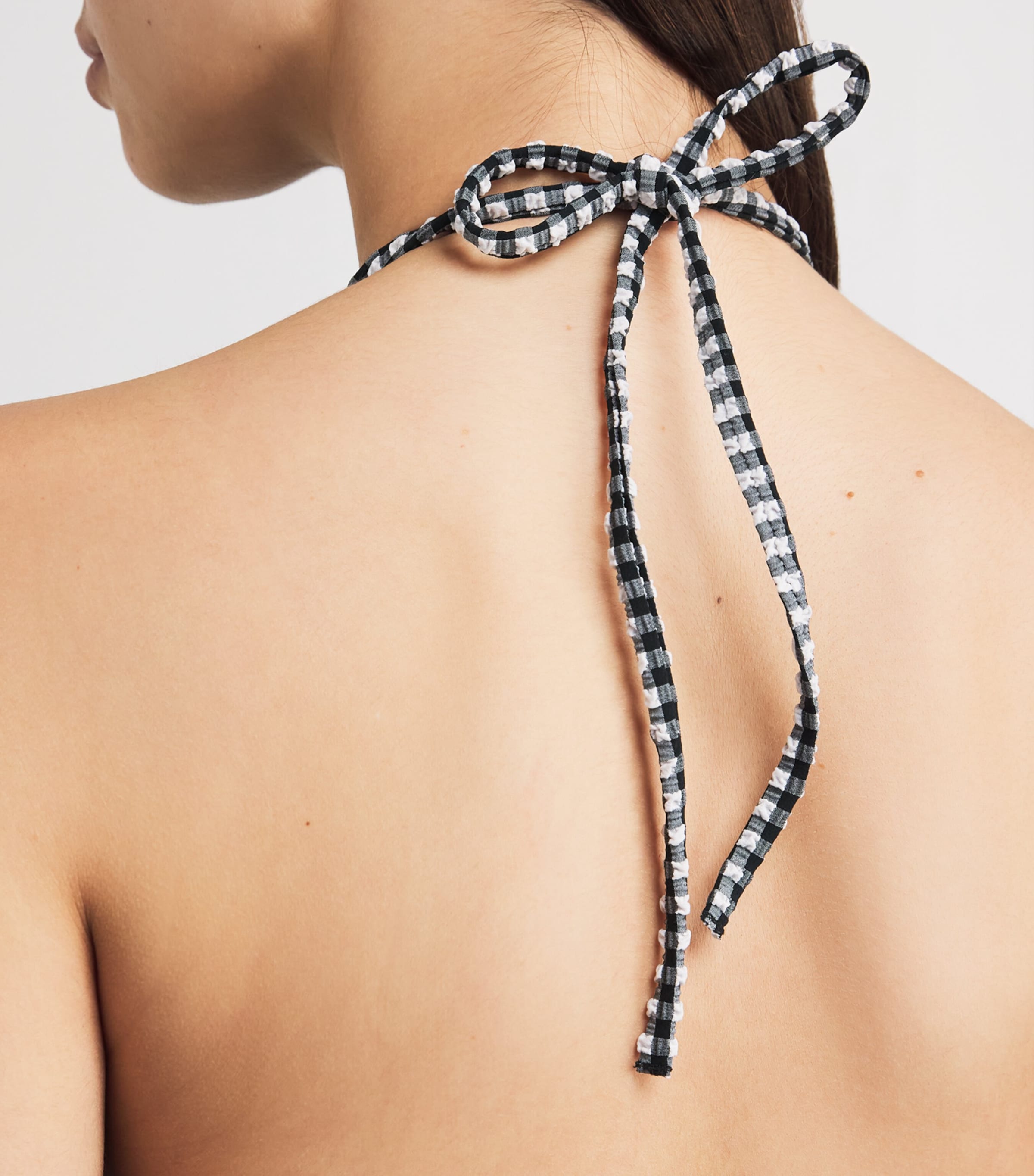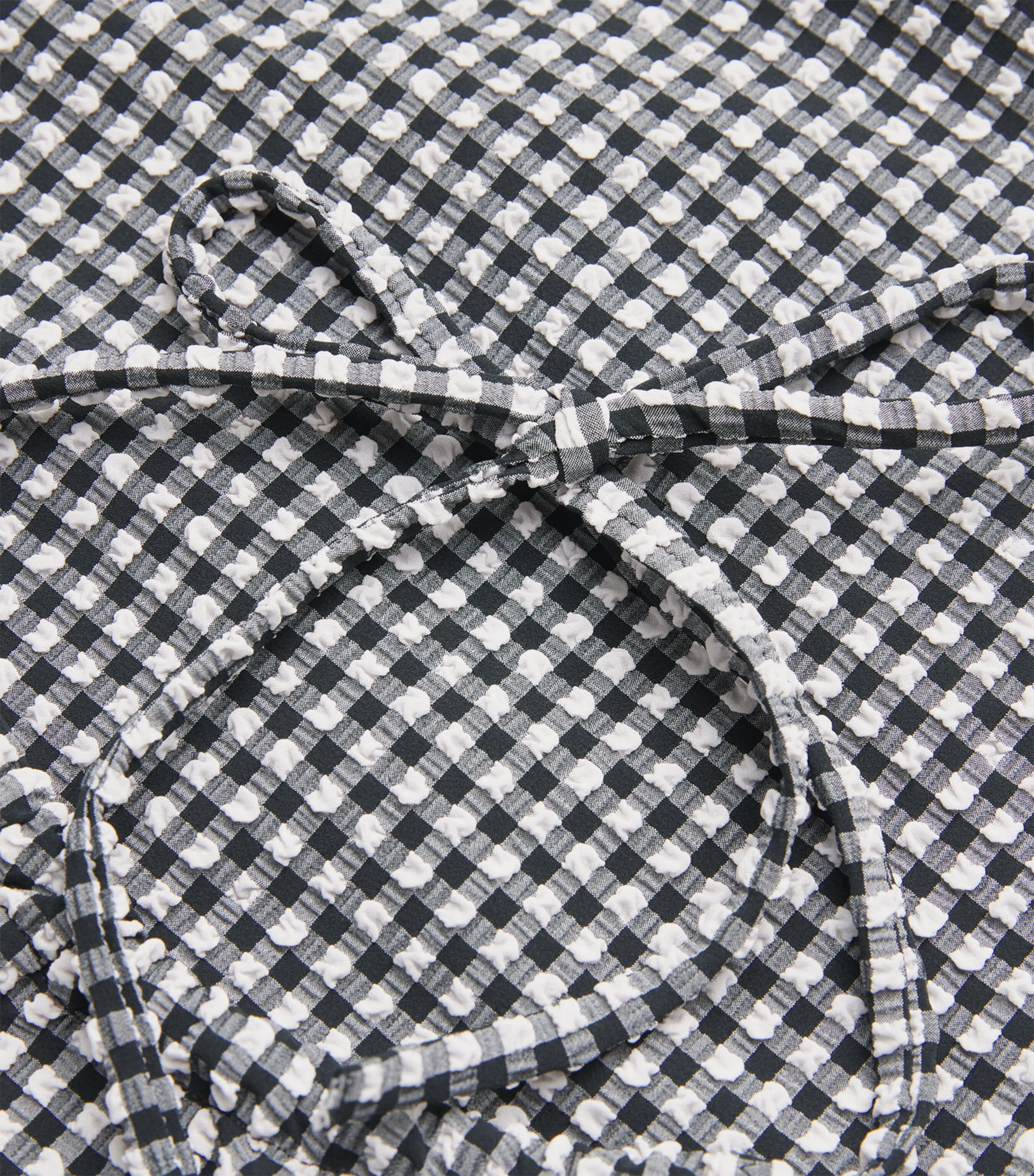 فستان هونزا جي الأسود ذو المربعات الصغيرة بياقة دائرية