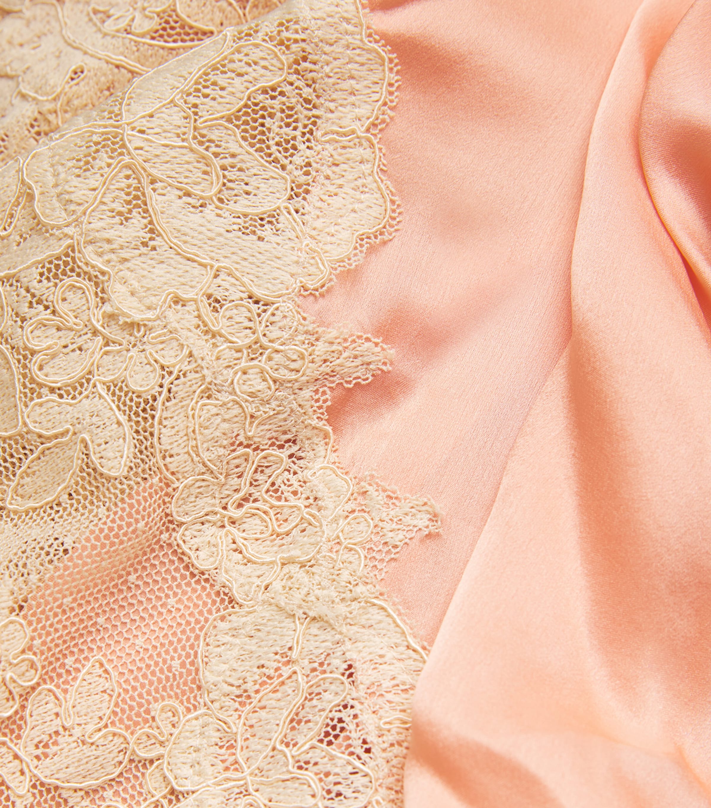 فستان قصير منوم من الحرير والدانتيل باللون العاجي