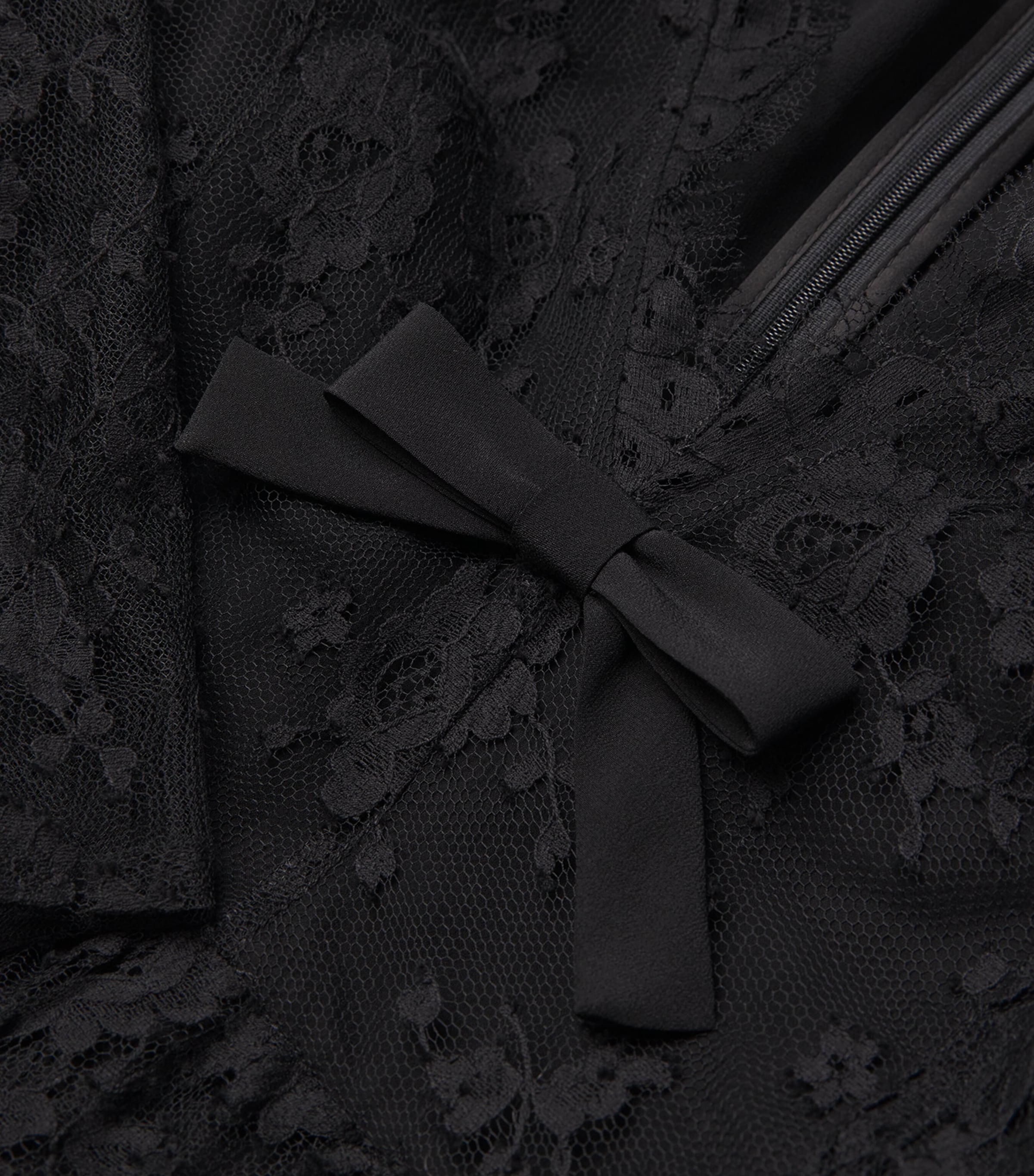 فستان قصير بتفاصيل فيونكة من الدانتيل - 0900 أسود / 46 تكنولوجيا المعلومات