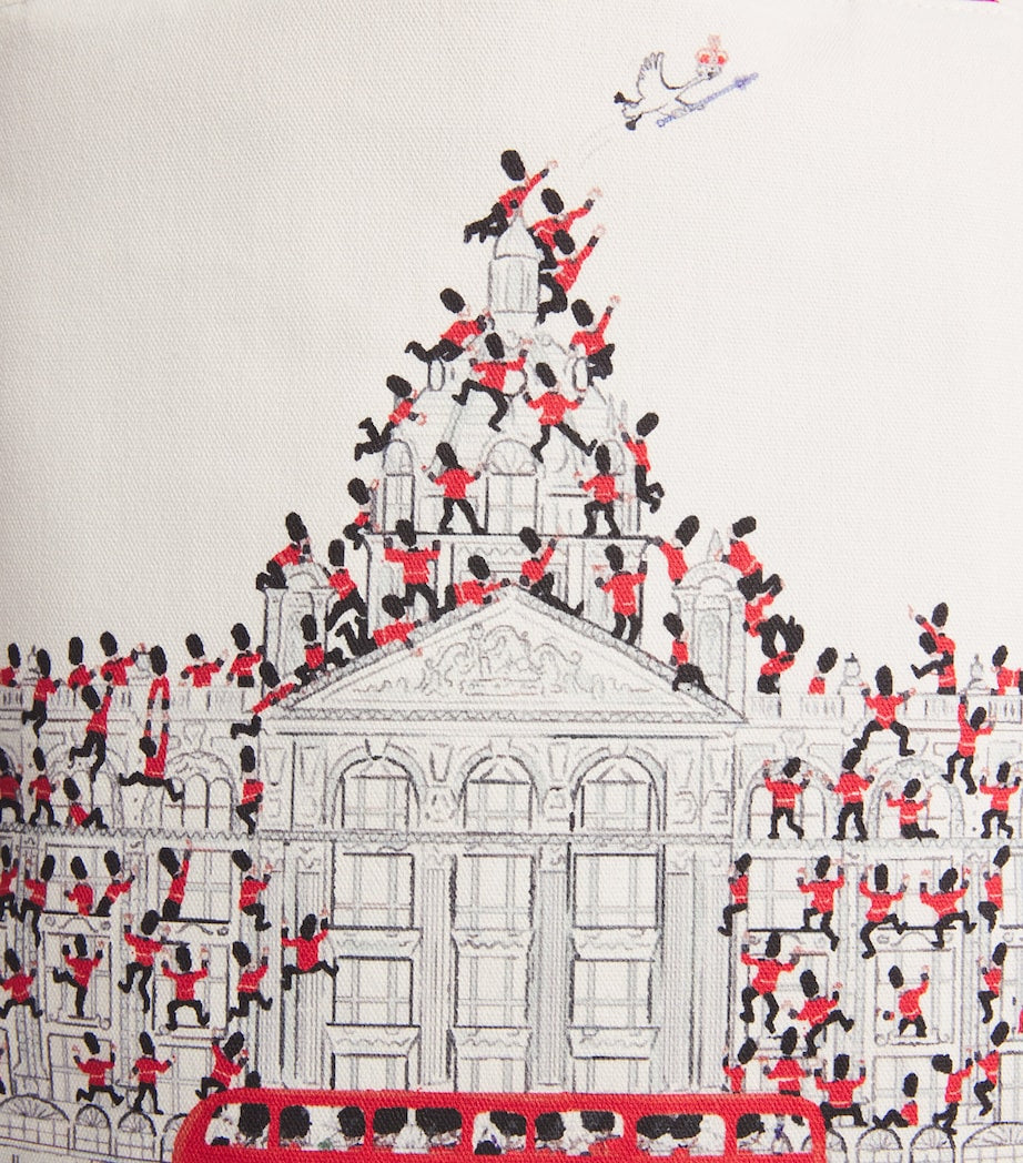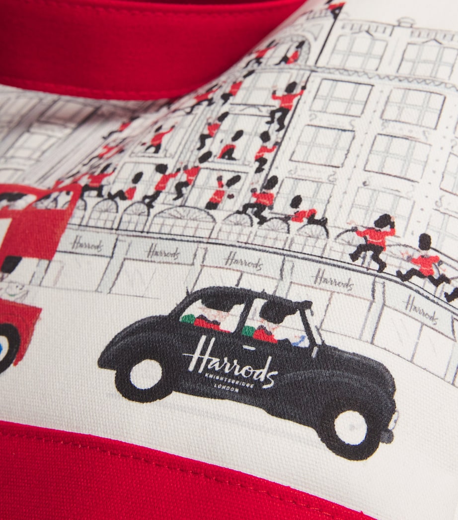 حقيبة توت نايتسبريدج كبيرة من القطن لعيد الميلاد باللون العاجي