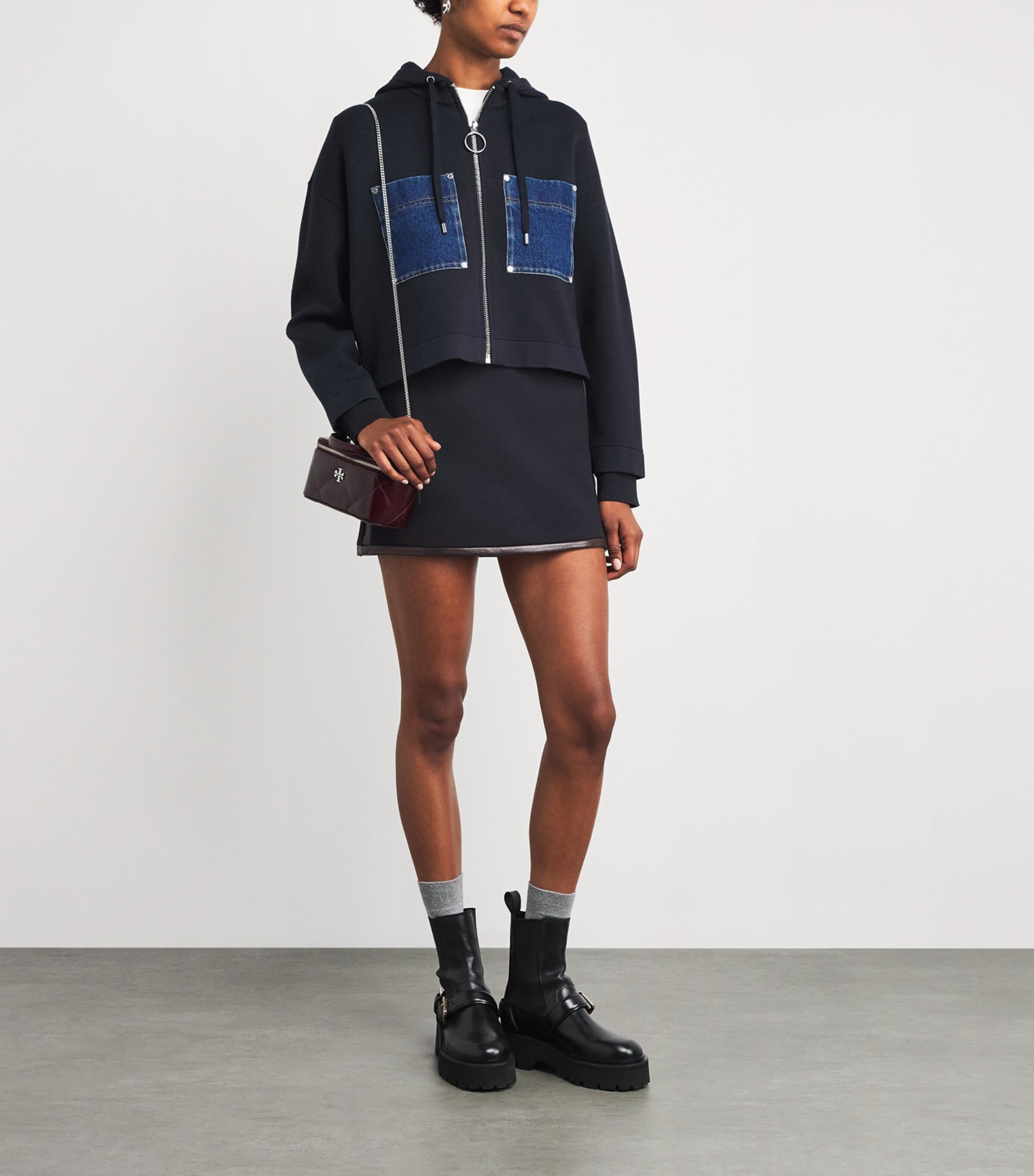 تنورة قصيرة بتفاصيل جلدية باللون الأزرق الداكن