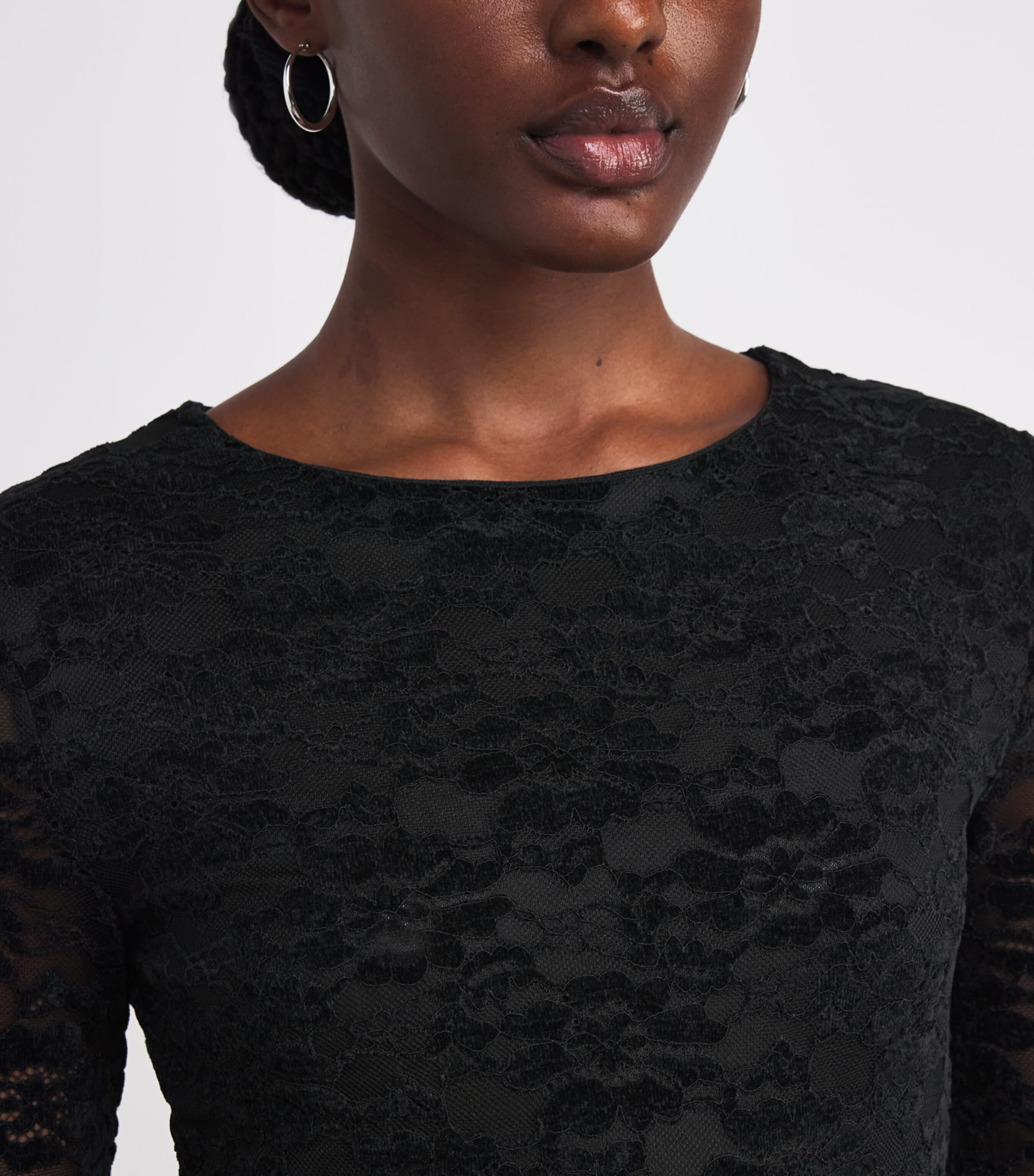 فستان ماجي الأسود المخملي والدانتيل القصير - أسود / 34 فر